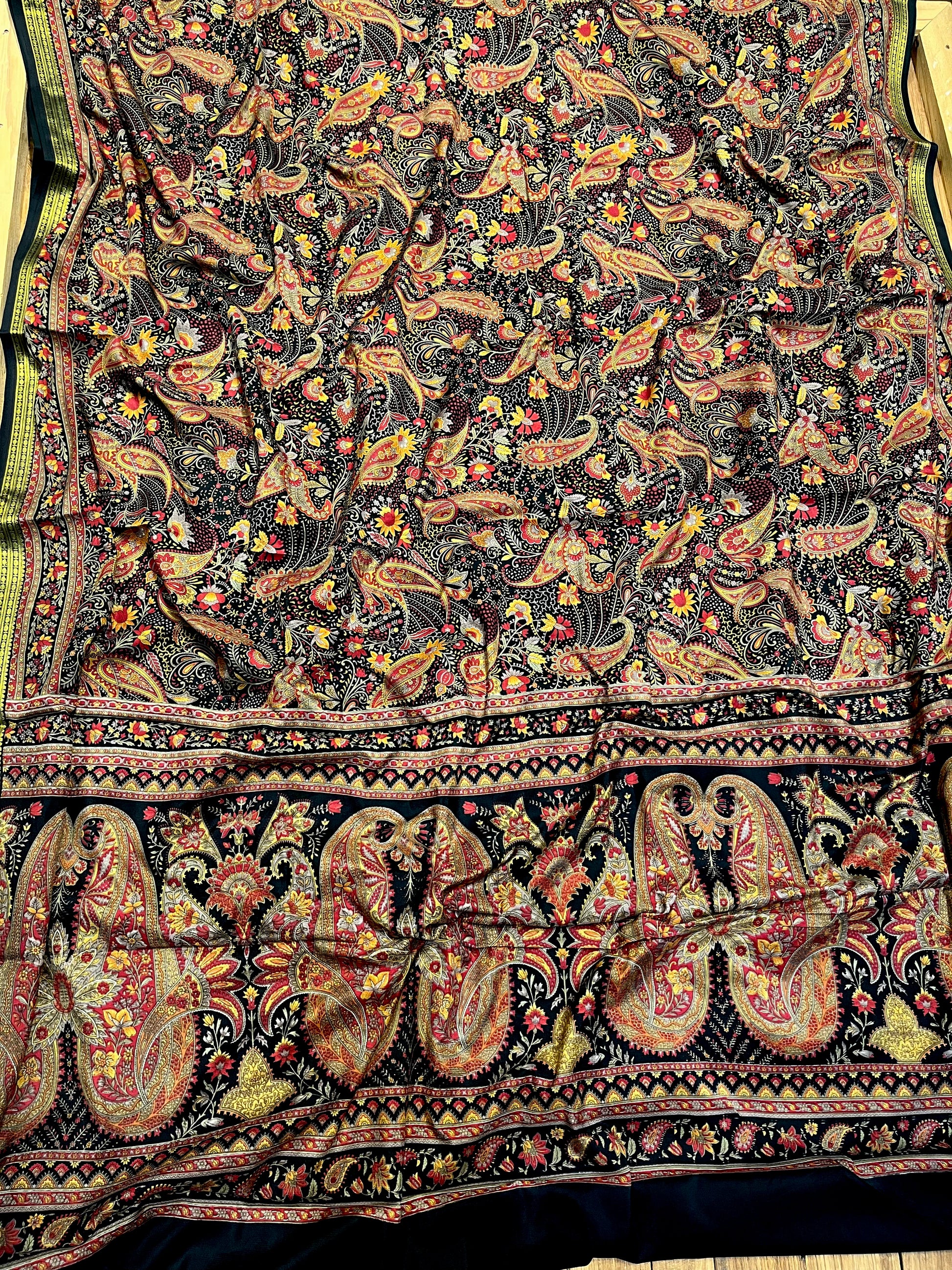 BLACK ART CREPE SILK PRINTED SAREE WITH ZARI BORDER (DELIVERY TIME 15 DAYS)