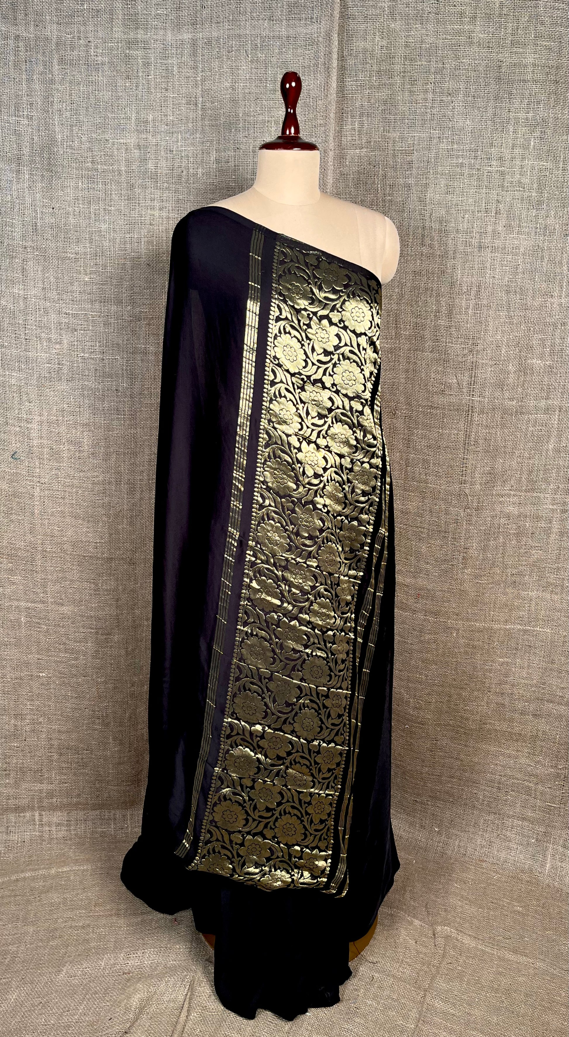 BLACK COLOUR MODAL SILK ZARI PALLU SAREE