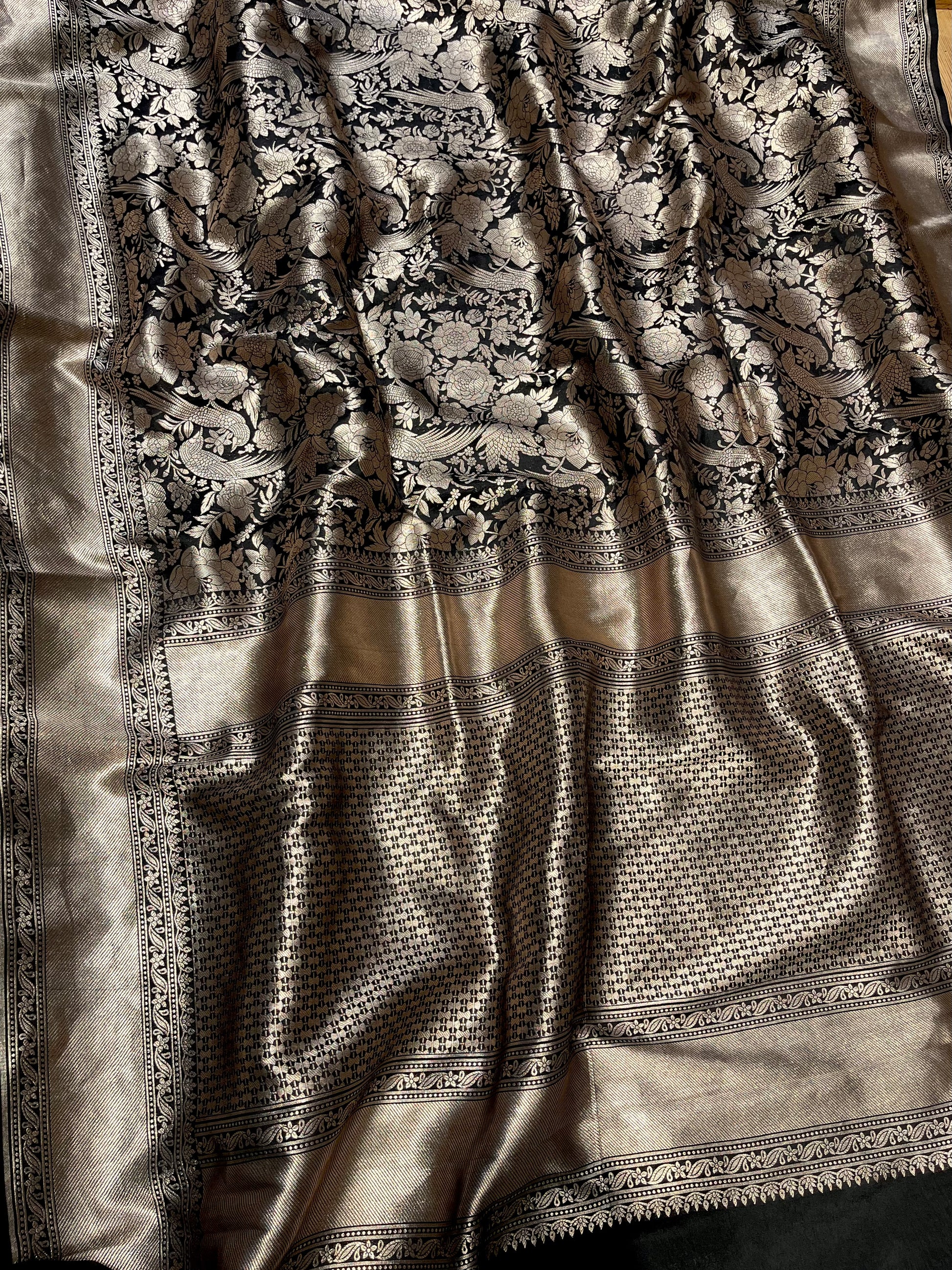 BLACK COLOUR PURE SILK BROCADE SAREE EMBELLISHED WITH ZARI WEAVES