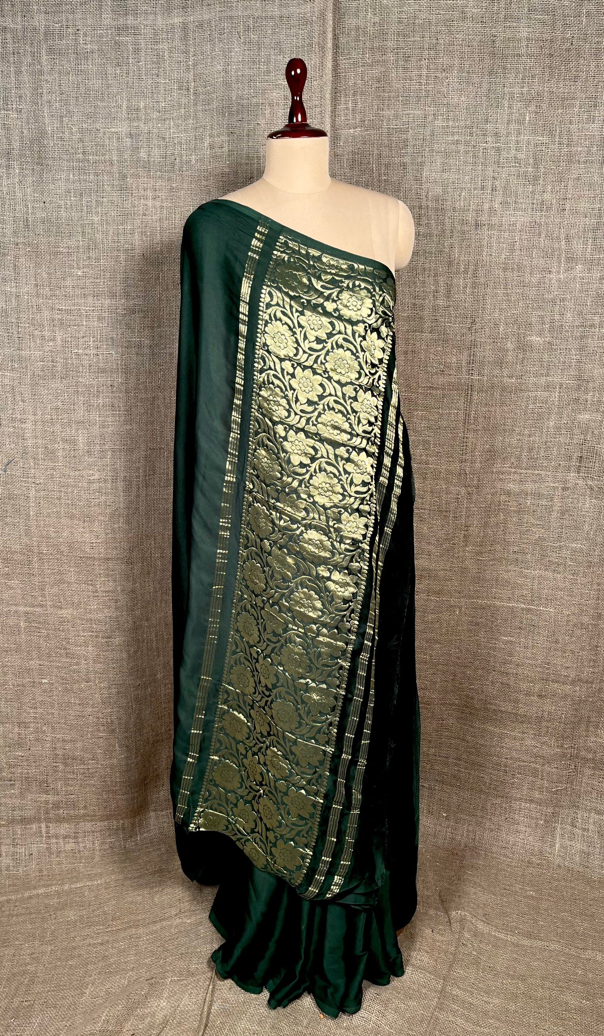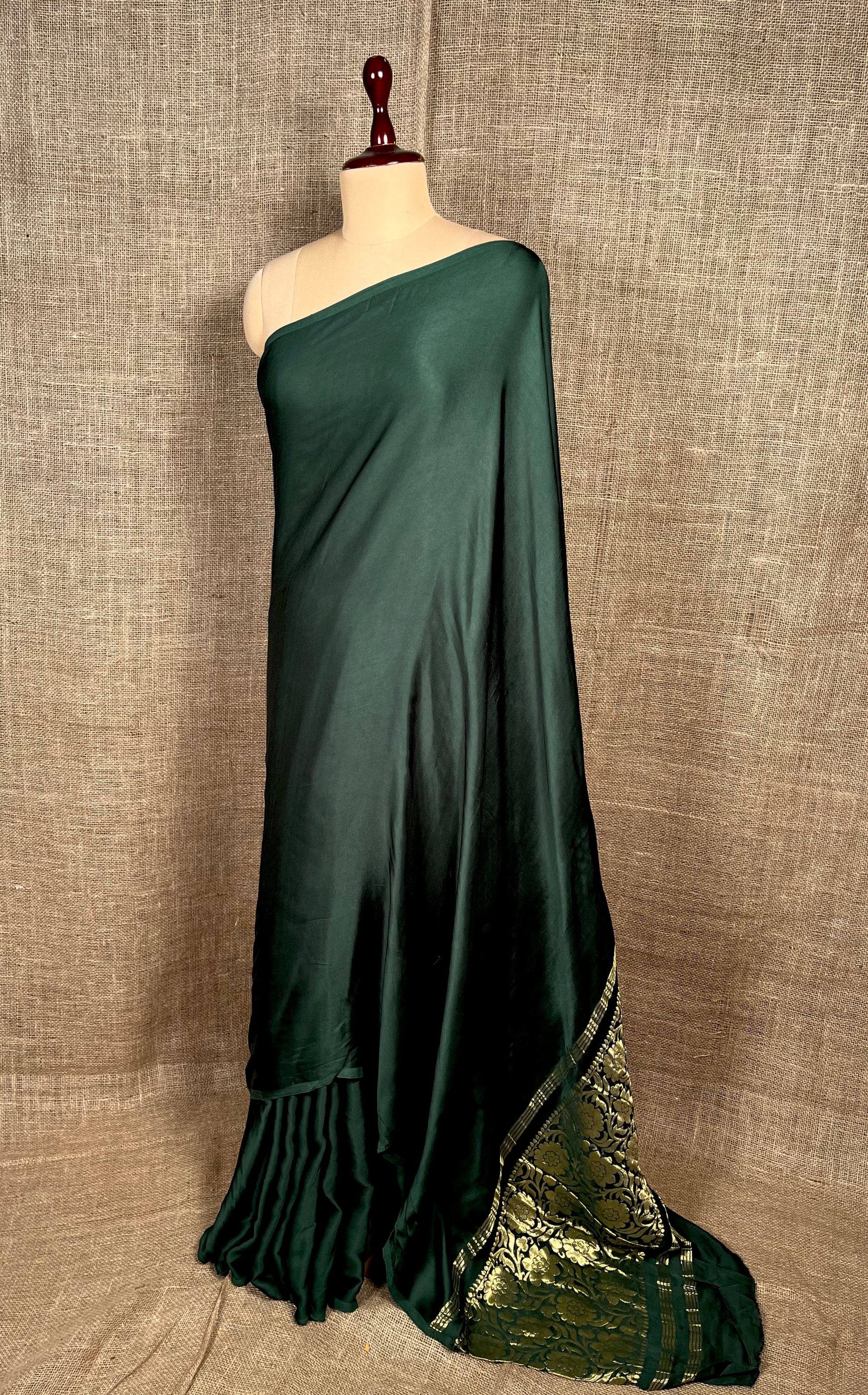 BOTTLE GREEN COLOUR MODAL SILK ZARI PALLU SAREE