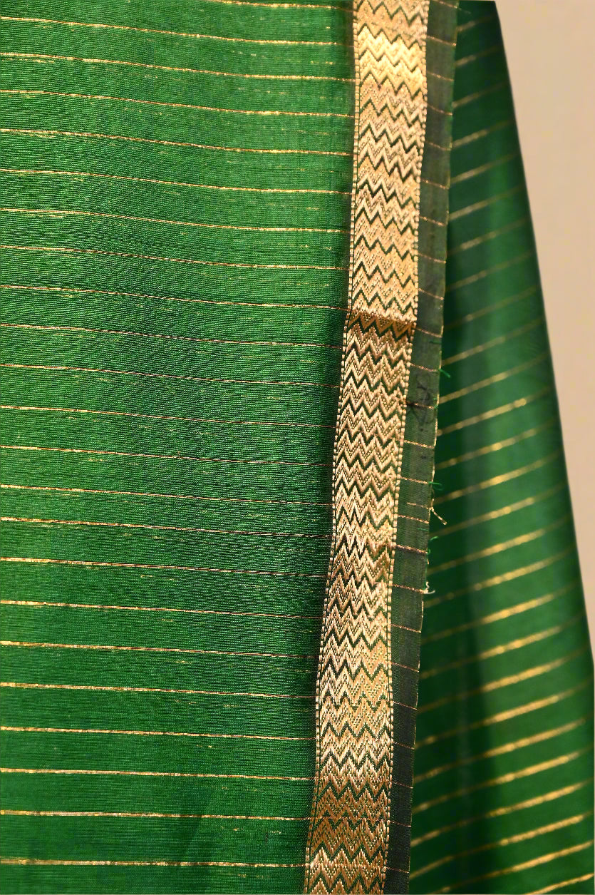 Color: Bottle Green with Vertical Zari Stripe Weave