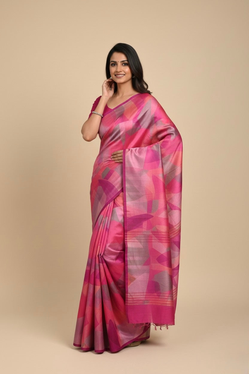 BRIGHT PINK PURE SATIN PRINTED SAREE