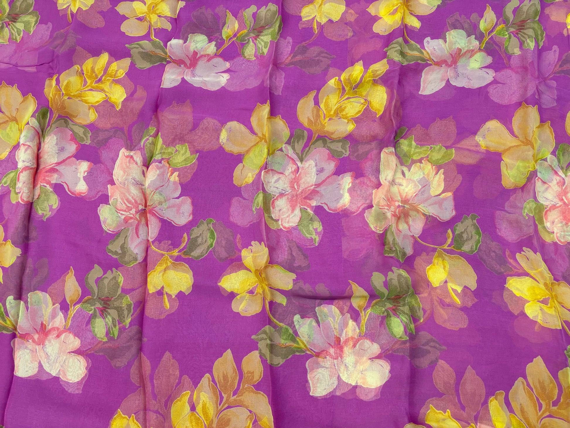 BRIGHT PURPLE FLORAL PRINTED CHIFFON SAREE