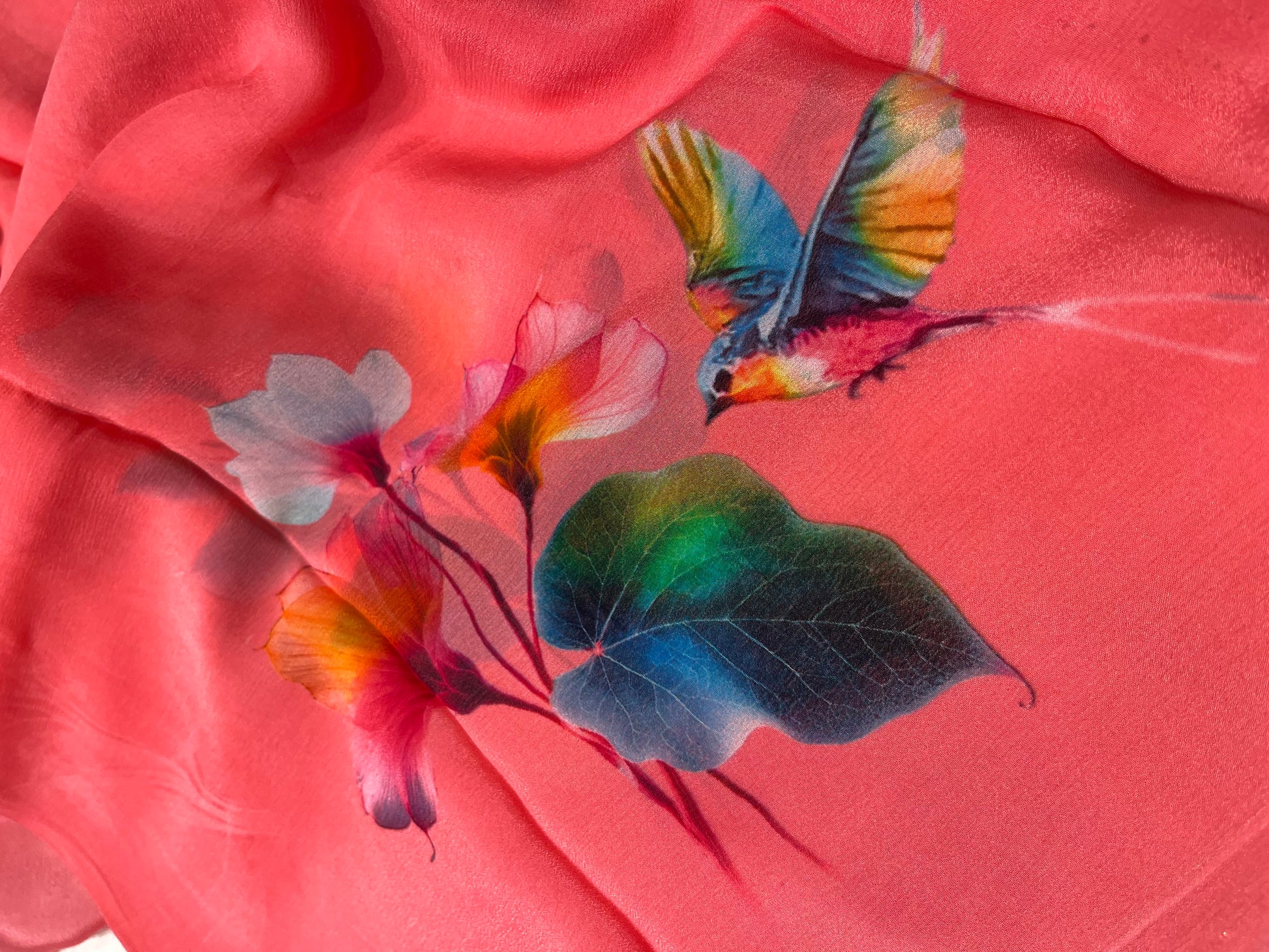 CORAL PEACH CHINON PRINTED SAREE PAIRED WITH A PLAIN CREPE BLOUSE (DELIVERY IN 20 DAYS)