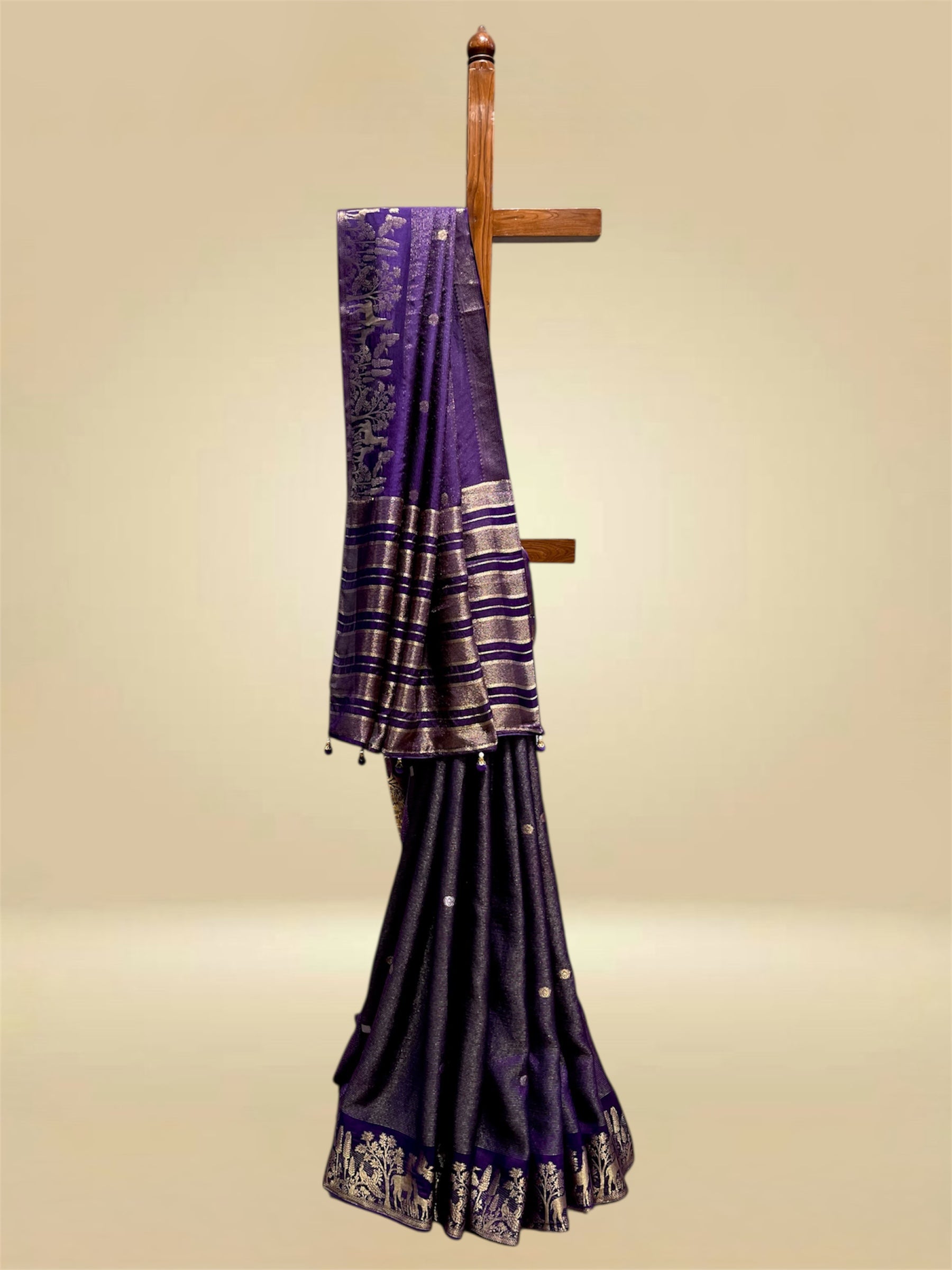 DARK PURPLE DOLA SILK ZARI STRIPE SAREE