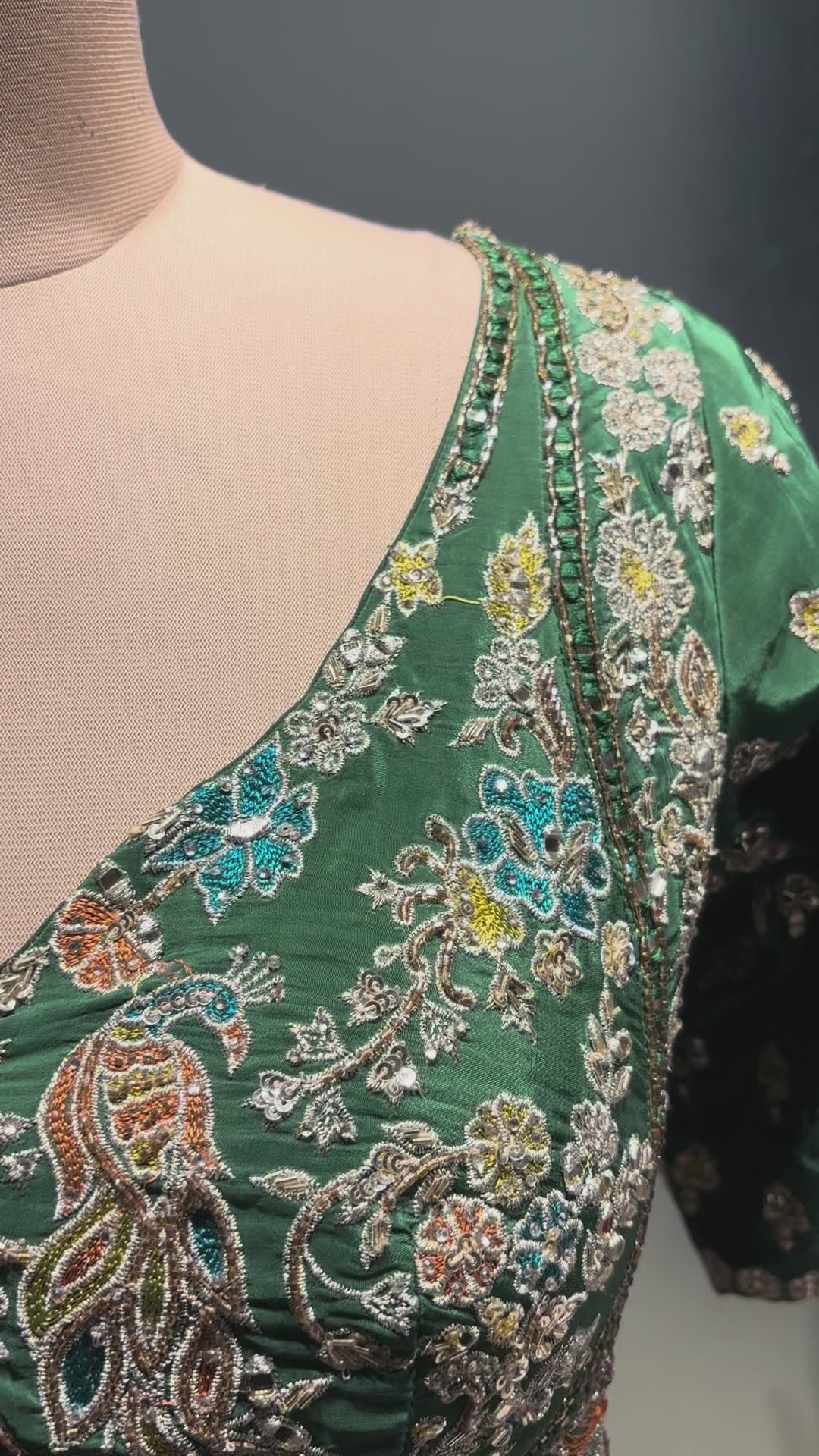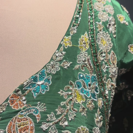 EMERALD GREEN CREPE SILK PICHWAI LEHENGA WITH AARI, DORI, MIRROR & SEQUINS WORK HIGHLIGHTS (DELIVERY IN 30 DAYS)