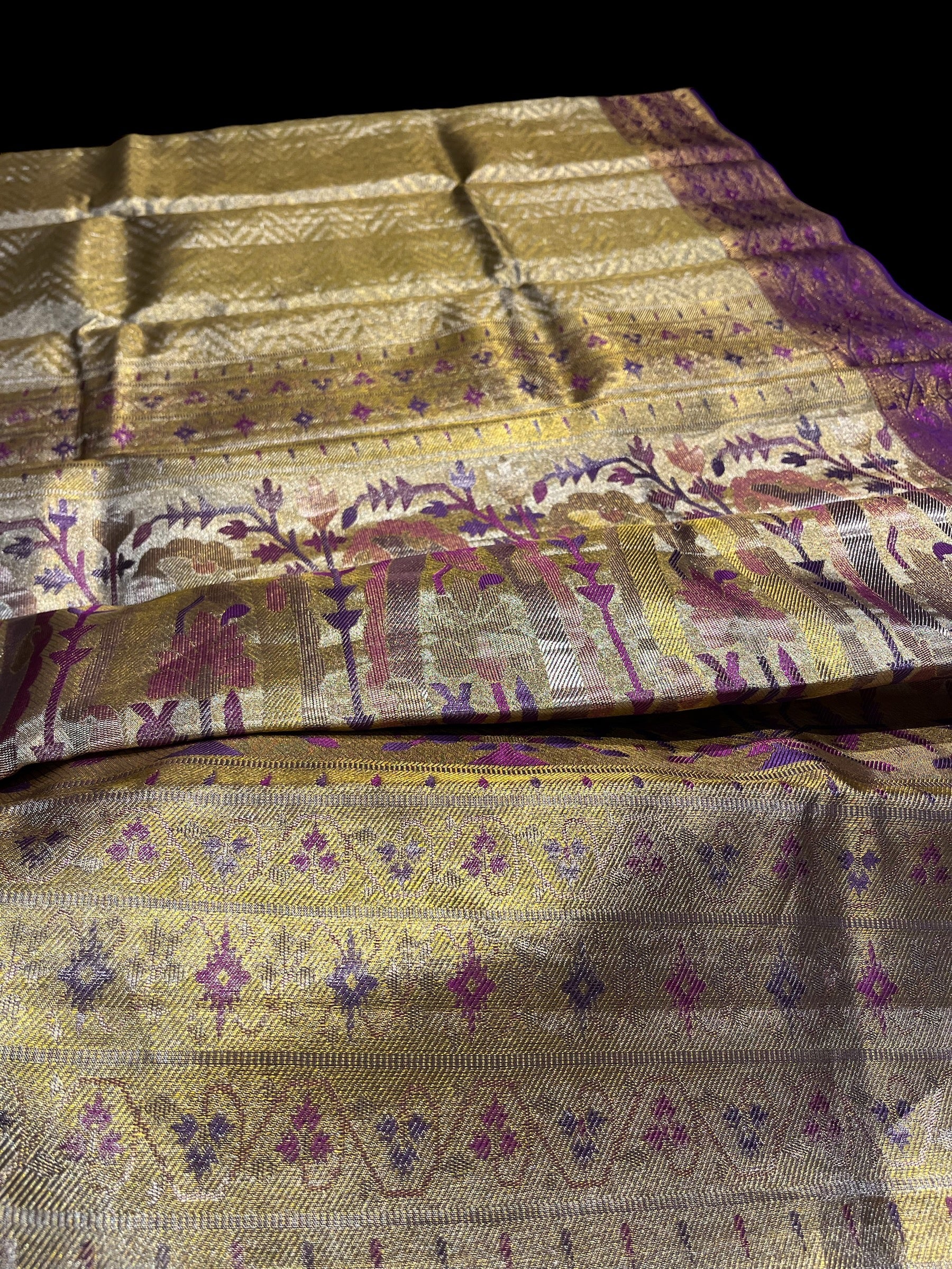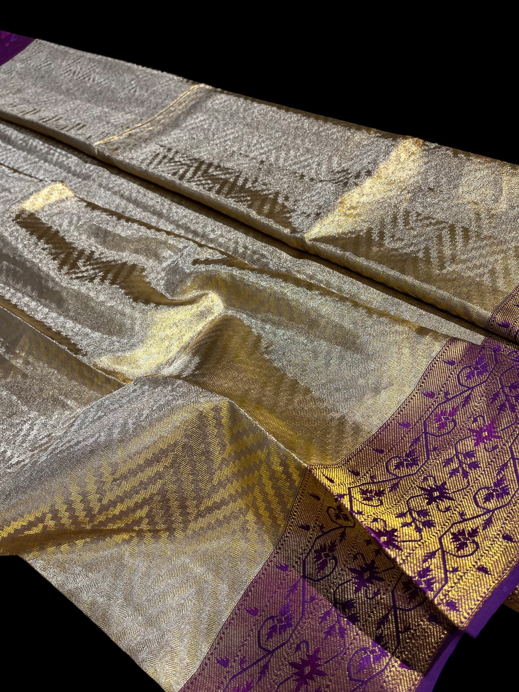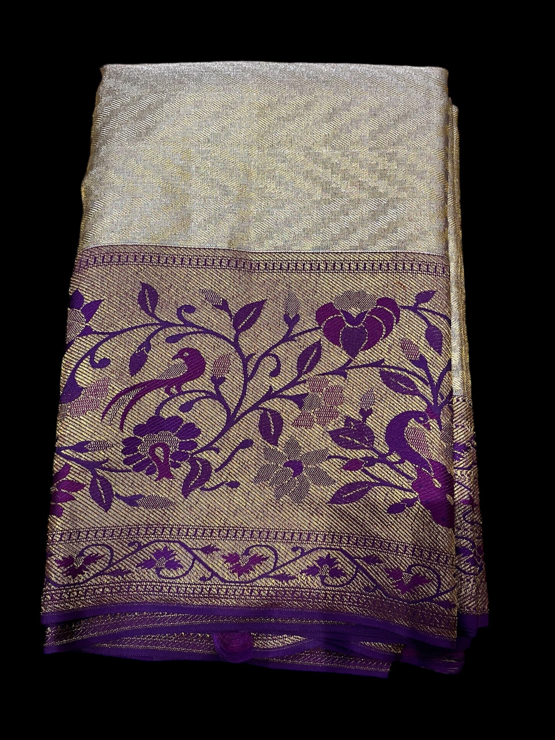 GOLDAN COLOR, PURE KANJIVARAM SILK SAREE WITH PURPLE BORDER