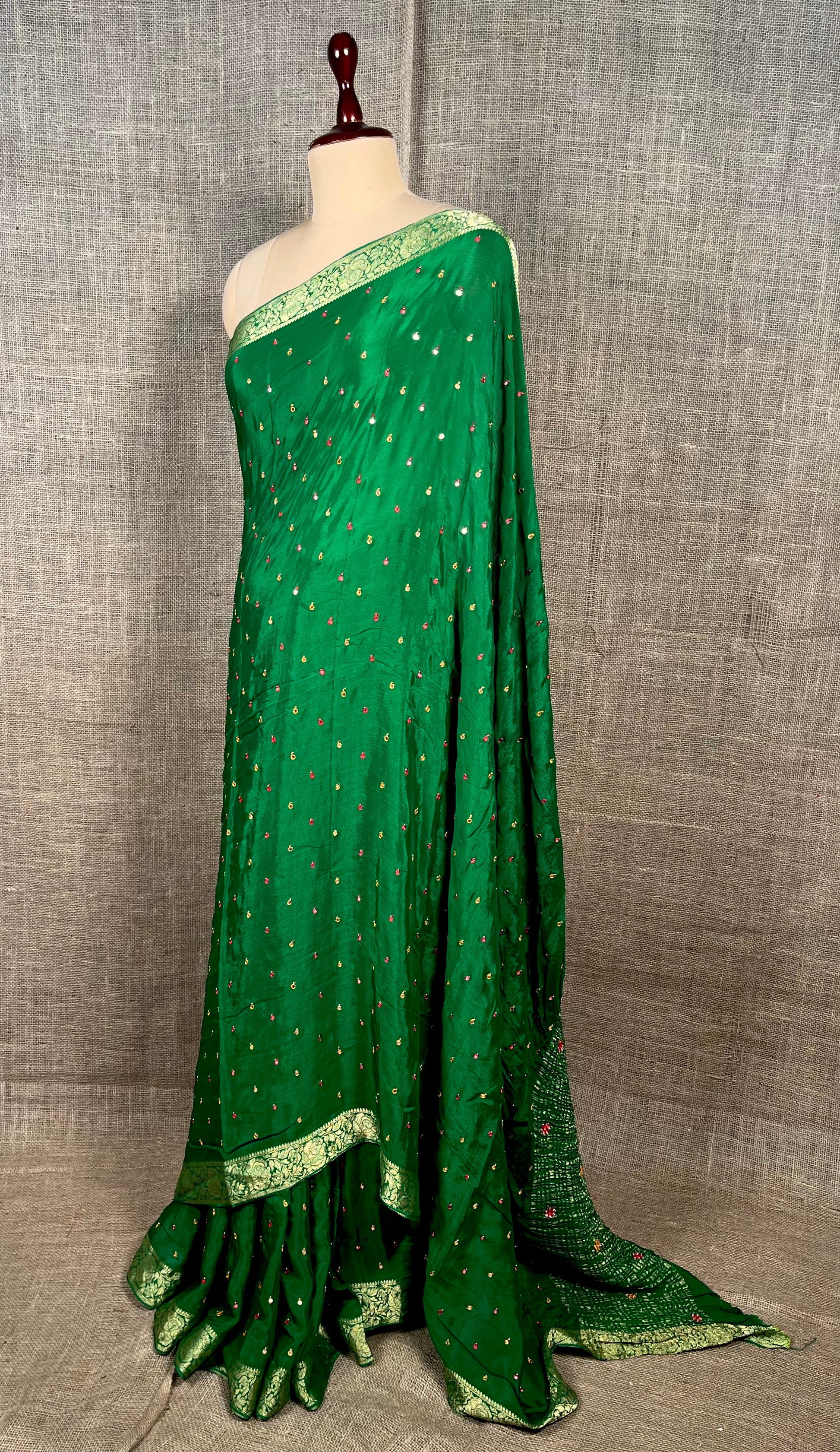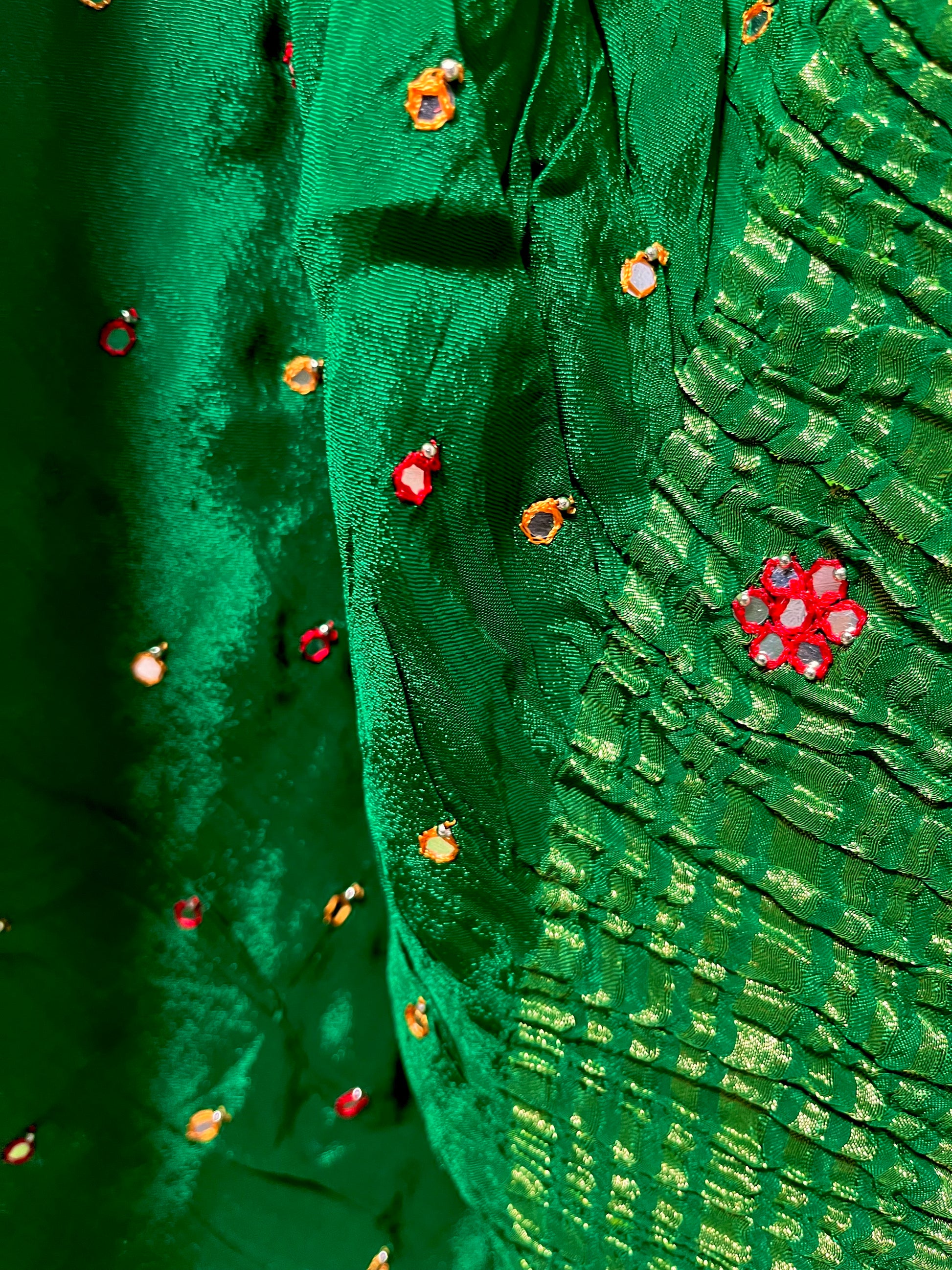 GREEN COLOUR CHINON MIRROR WORK SAREE