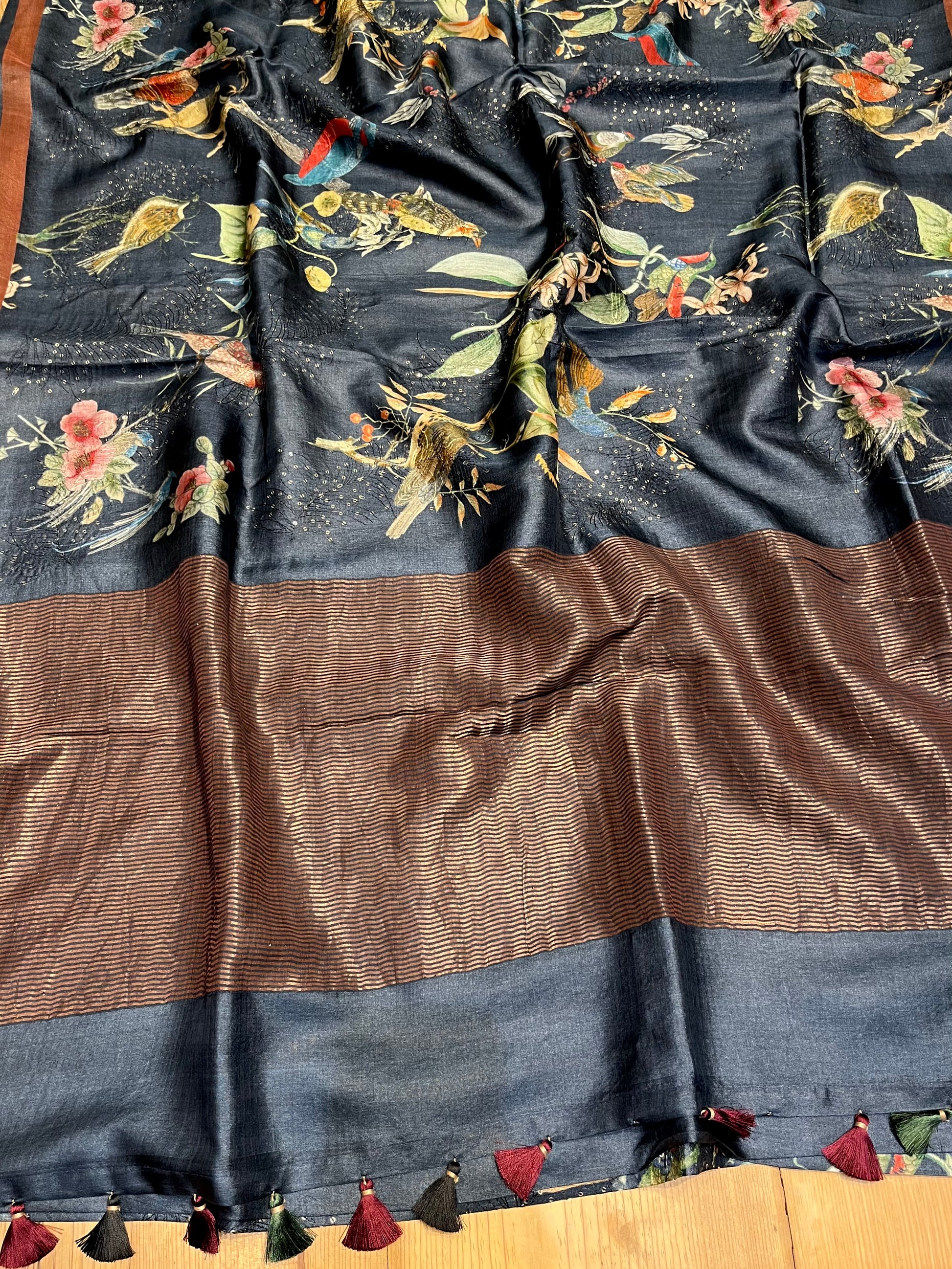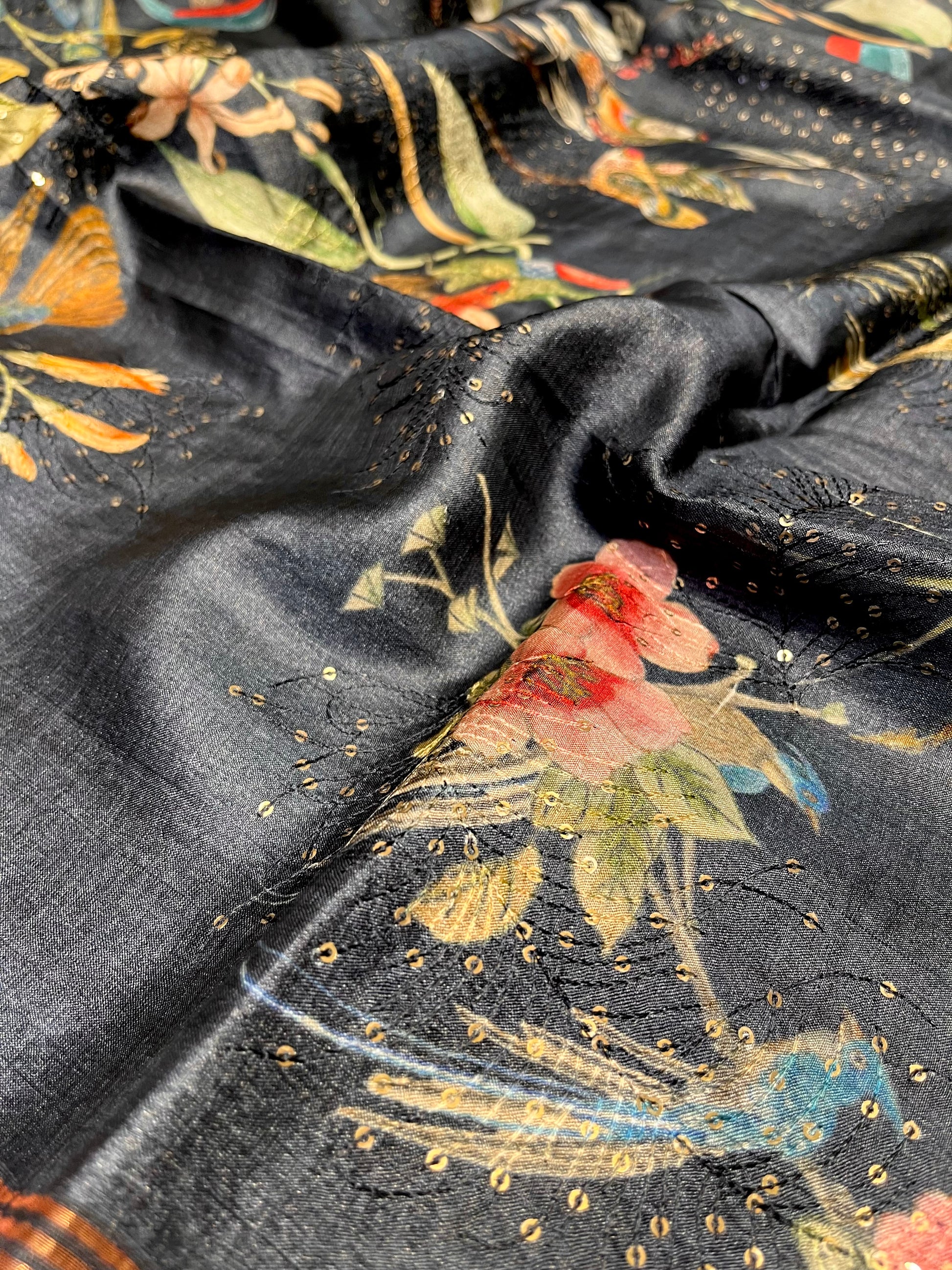 GREY COLOUR TUSSAR SILK SAREE EMBELLISHED WITH SEQUINS WORK