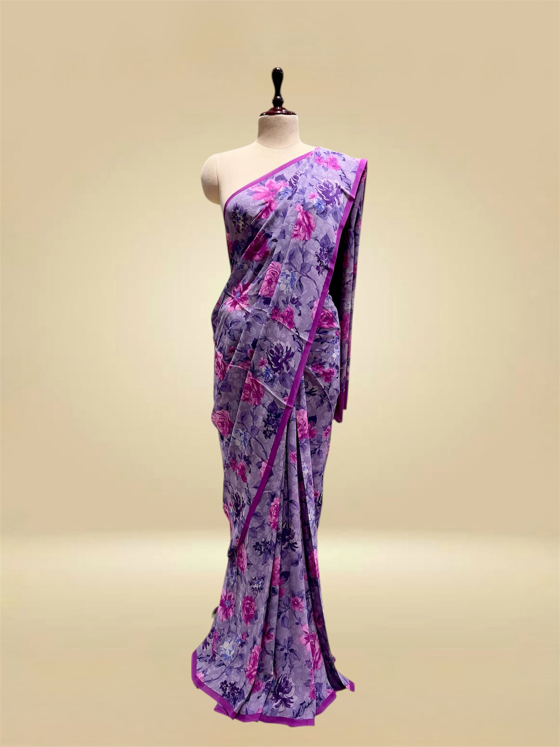 LAVENDER COLOUR PURE GEORGETTE FLORAL PRINTED SAREE (DELIVERY IN 20 DAYS)
