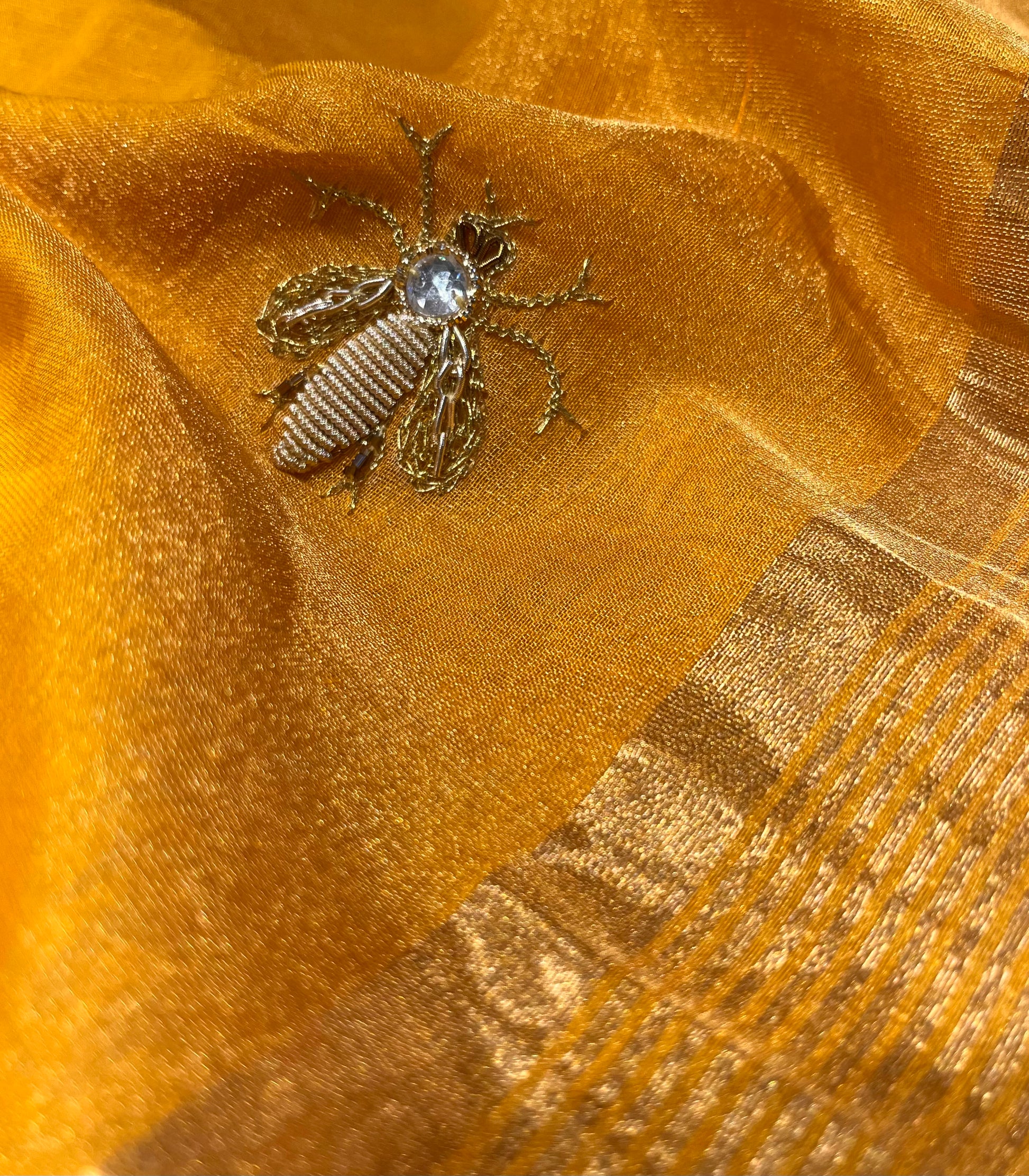 MUSTARD COLOUR CHANDERI TISSUE HAND EMBROIDERED SAREE EMBELLISED WITH ZARDOZI WORK
