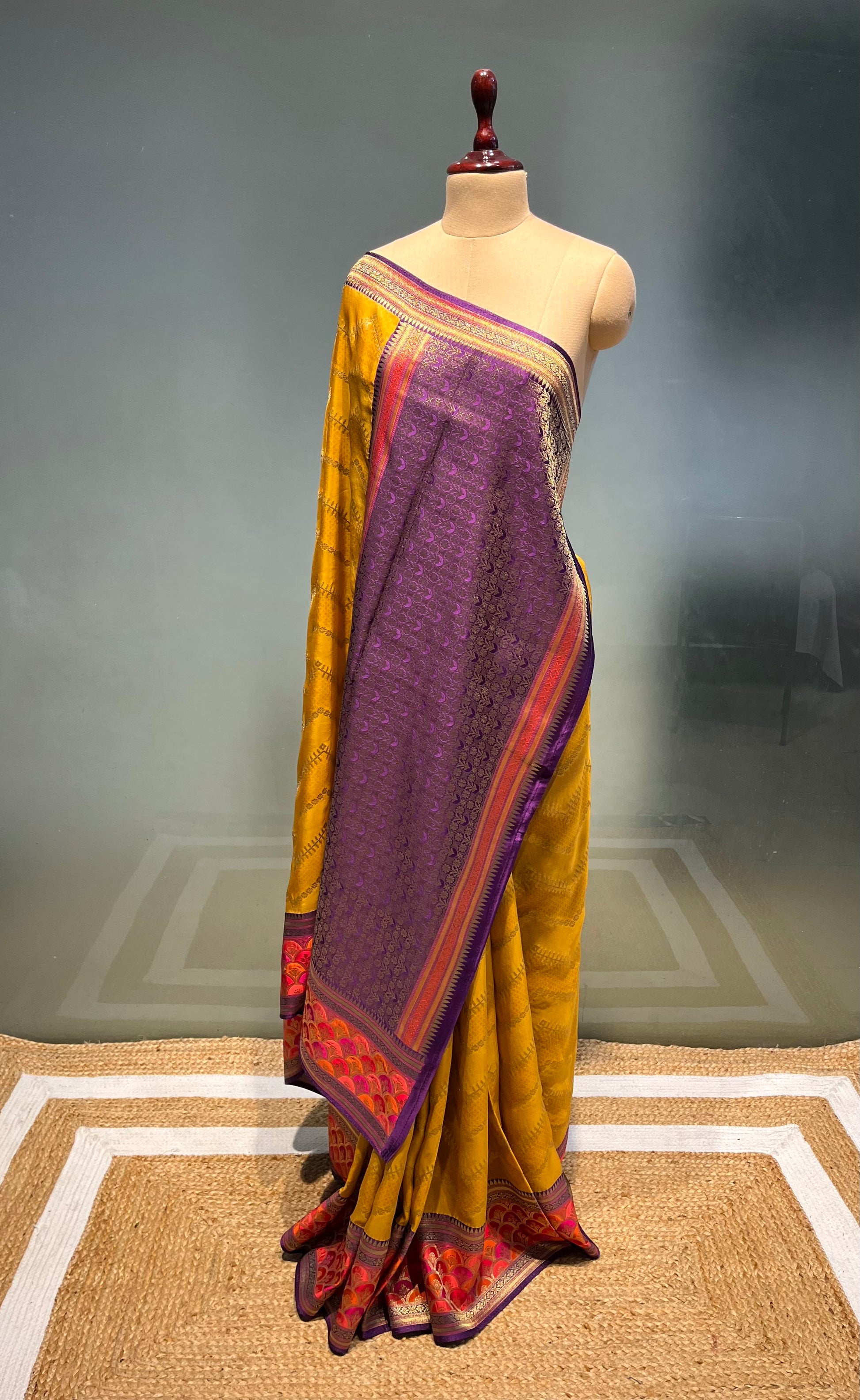 MUSTARD COLOUR GEORGETTE TISSUE SAREE EMBELLISHED WITH ZARI WEAVES
