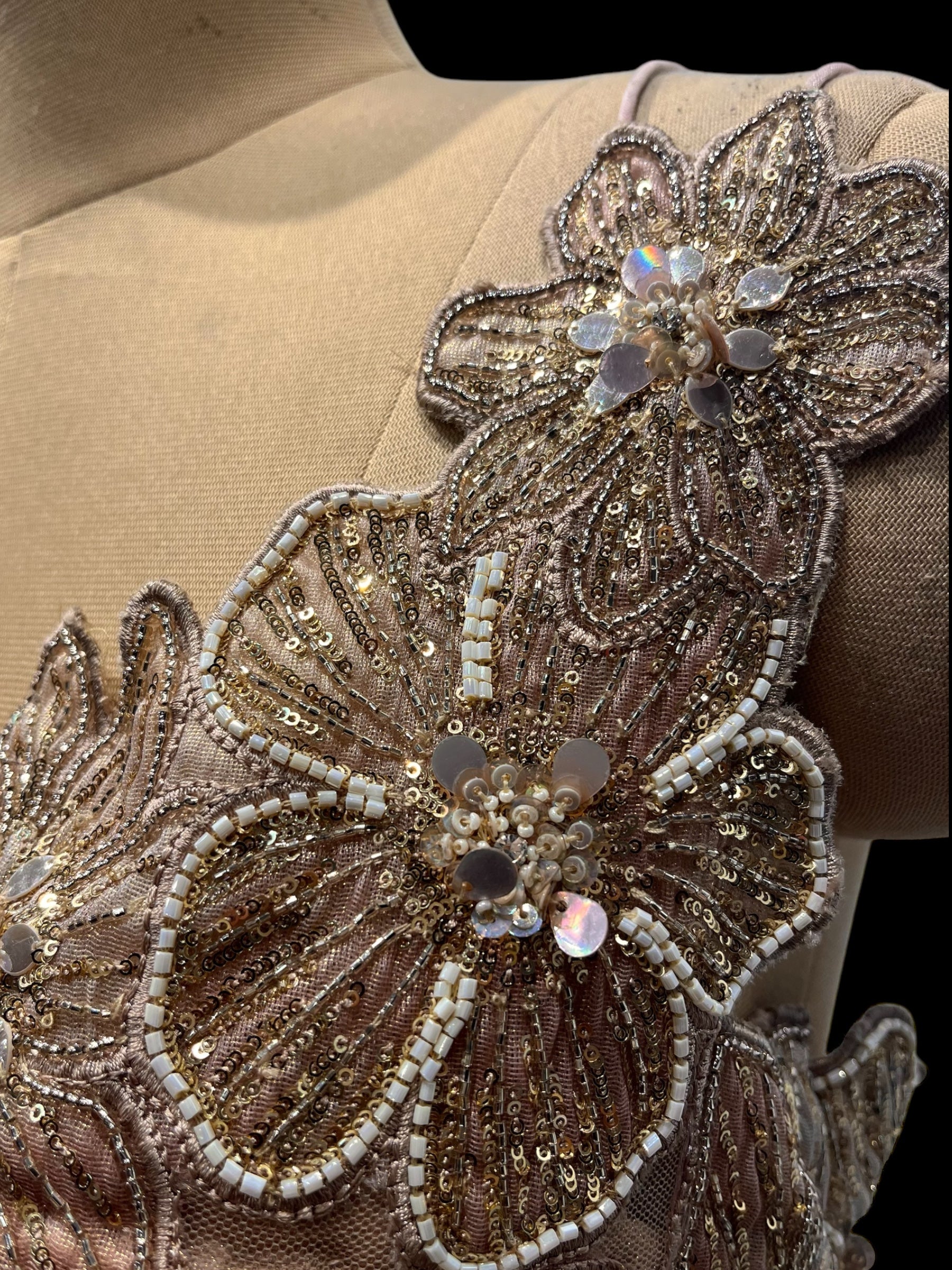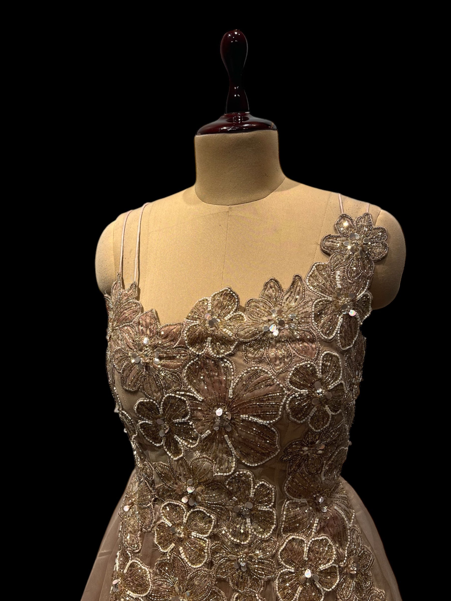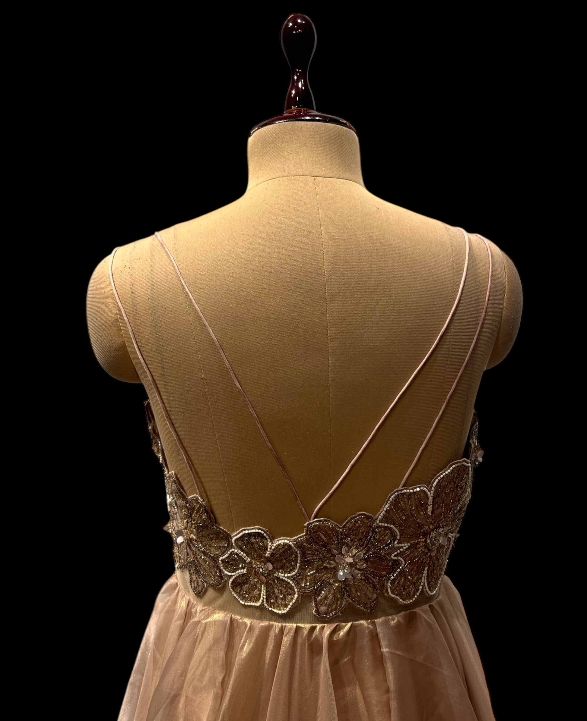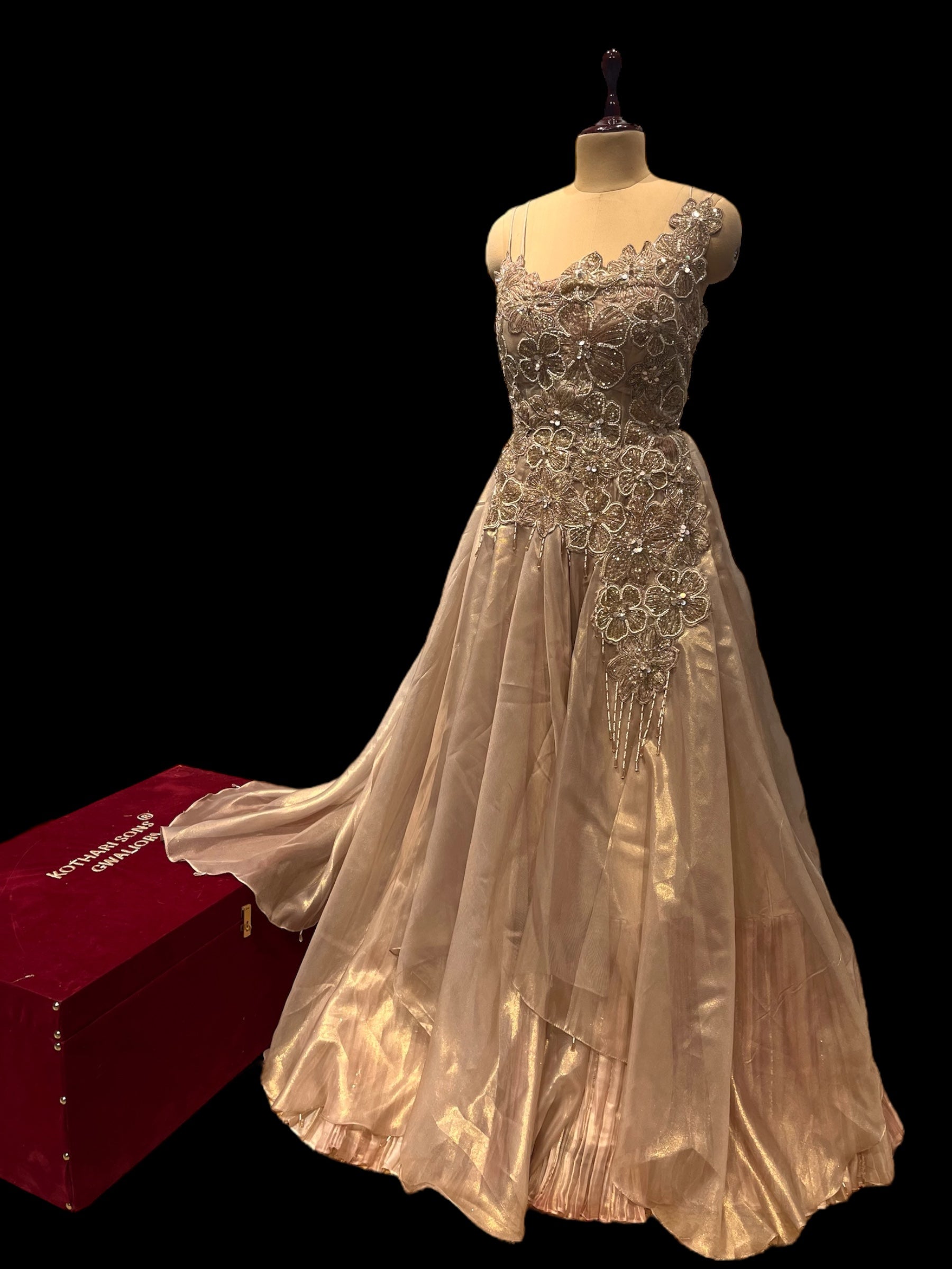 PEACH COLOUR TISSUE GOWN EMBELLISHED WITH KARDHANA & SEQUINS WORK