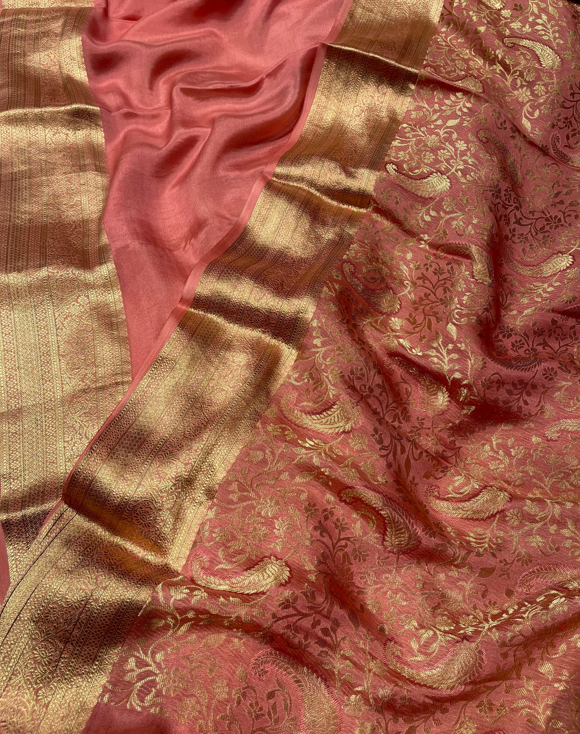 PEACH MYSORE CREPE SILK SAREE EMBELLISHED WITH ZARI WEAVES
