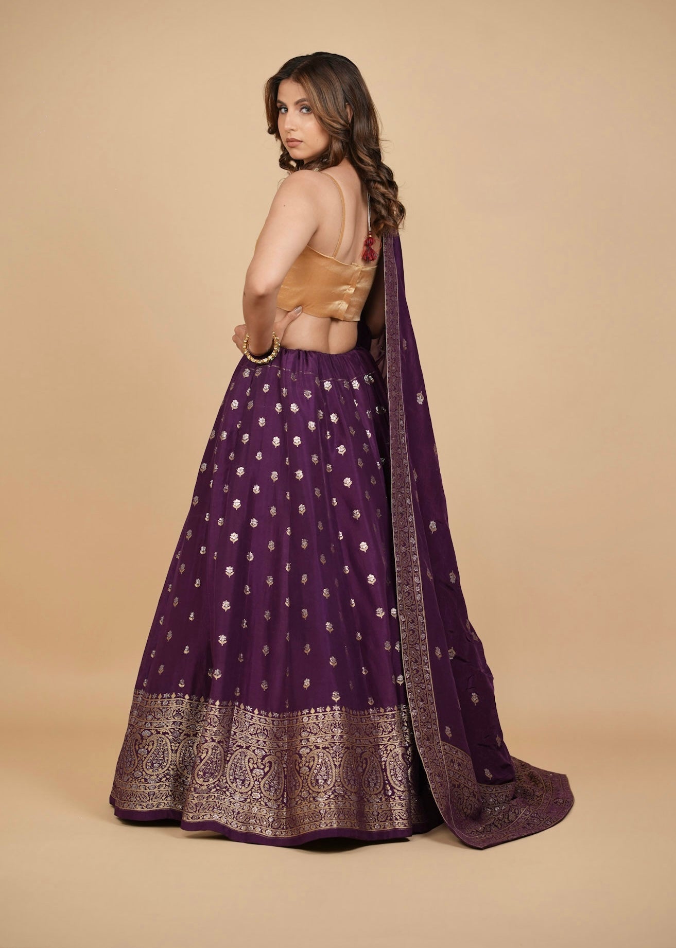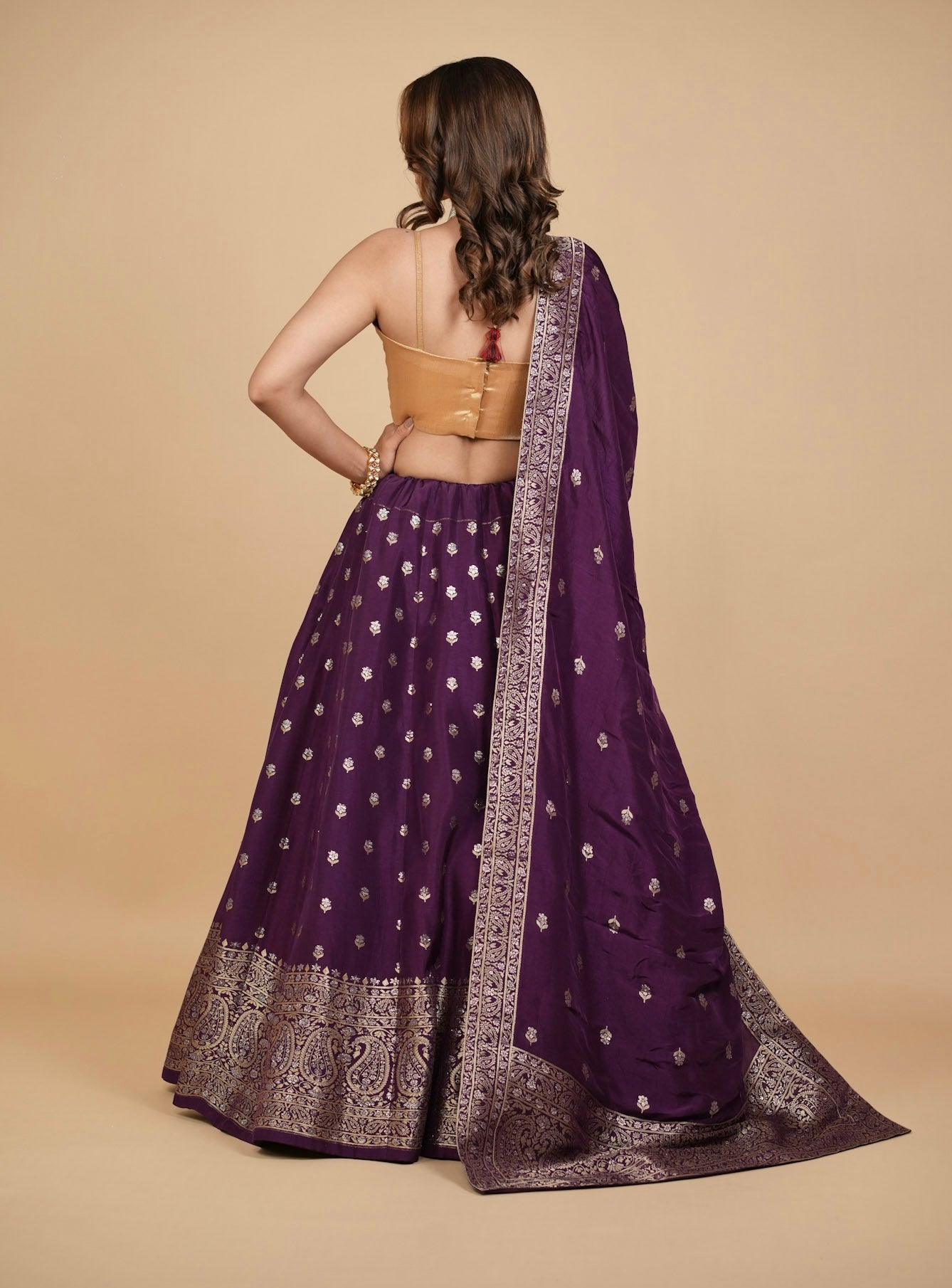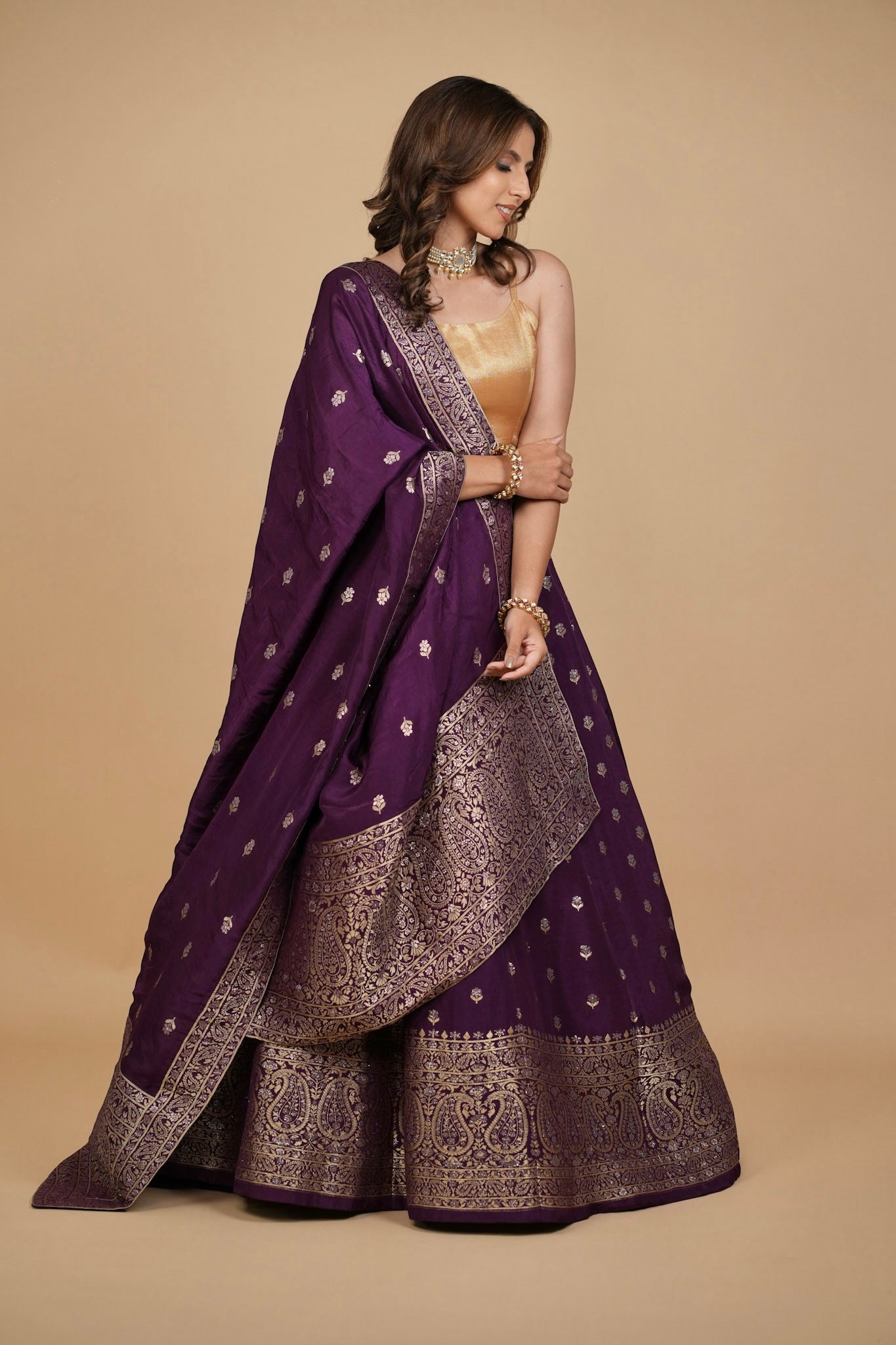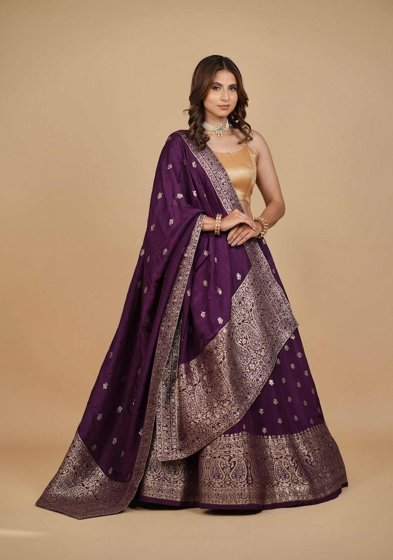 PURPLE BANARASI LEHENGA WITH DUPATTA AND MONOTONE BLOUSE