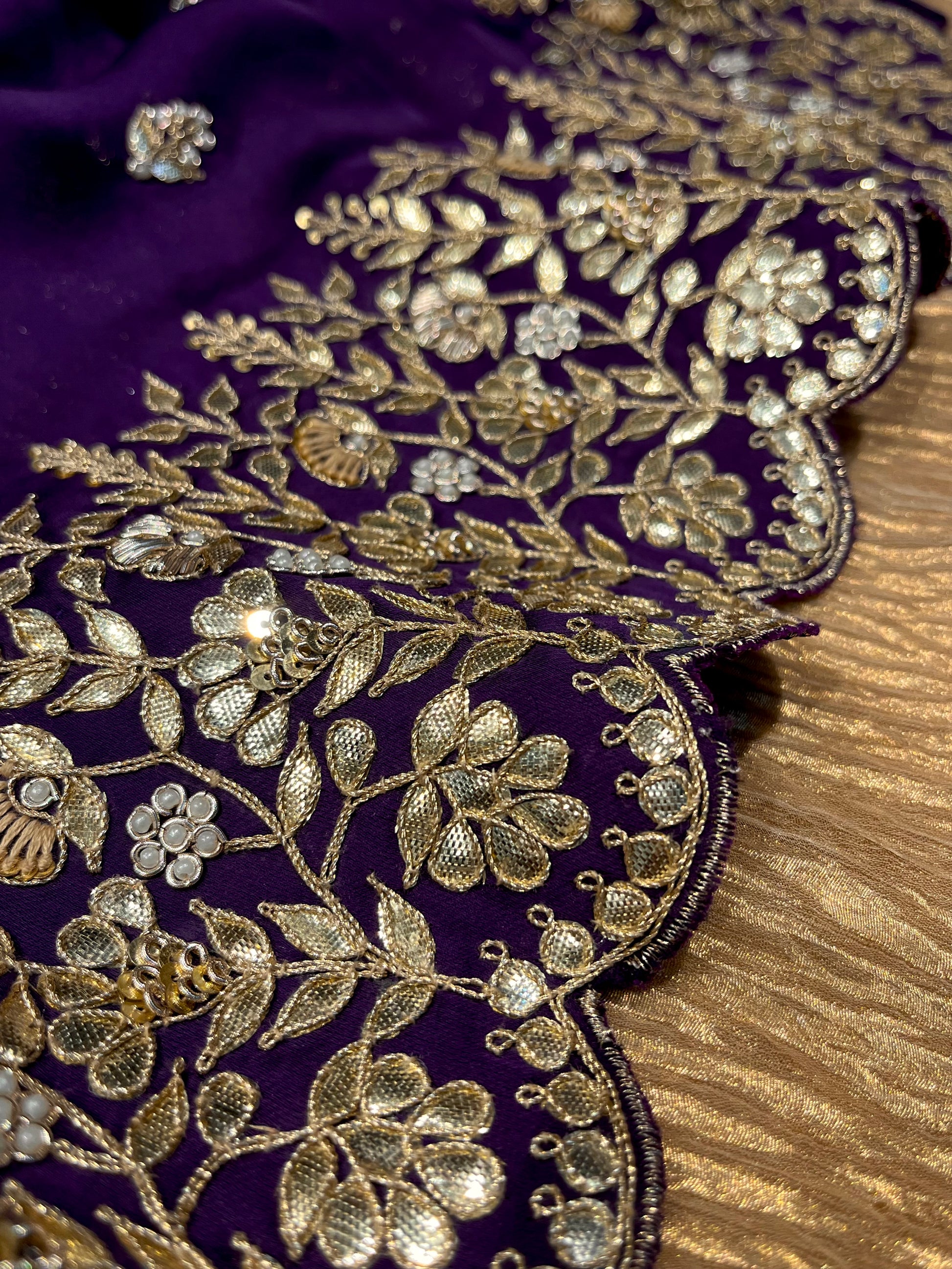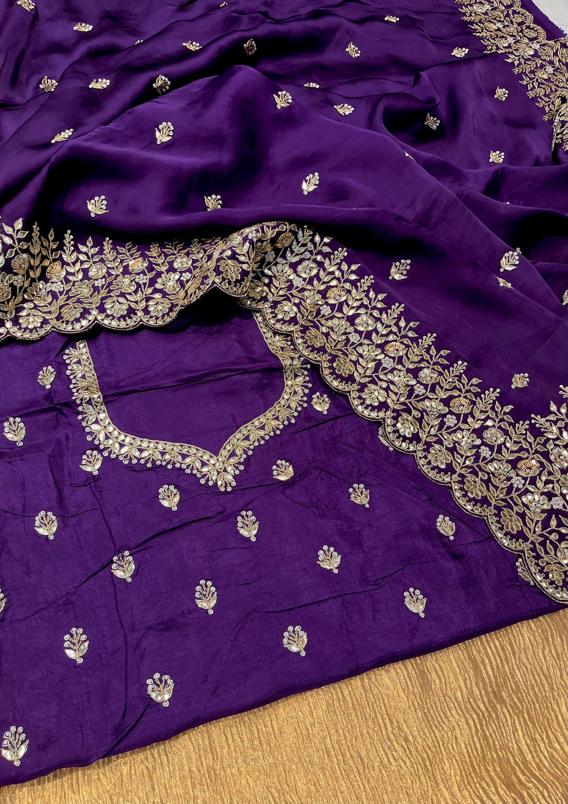 PURPLE COLOUR PURE ORGANZA GOTA PATTI EMBROIDERED SAREE
