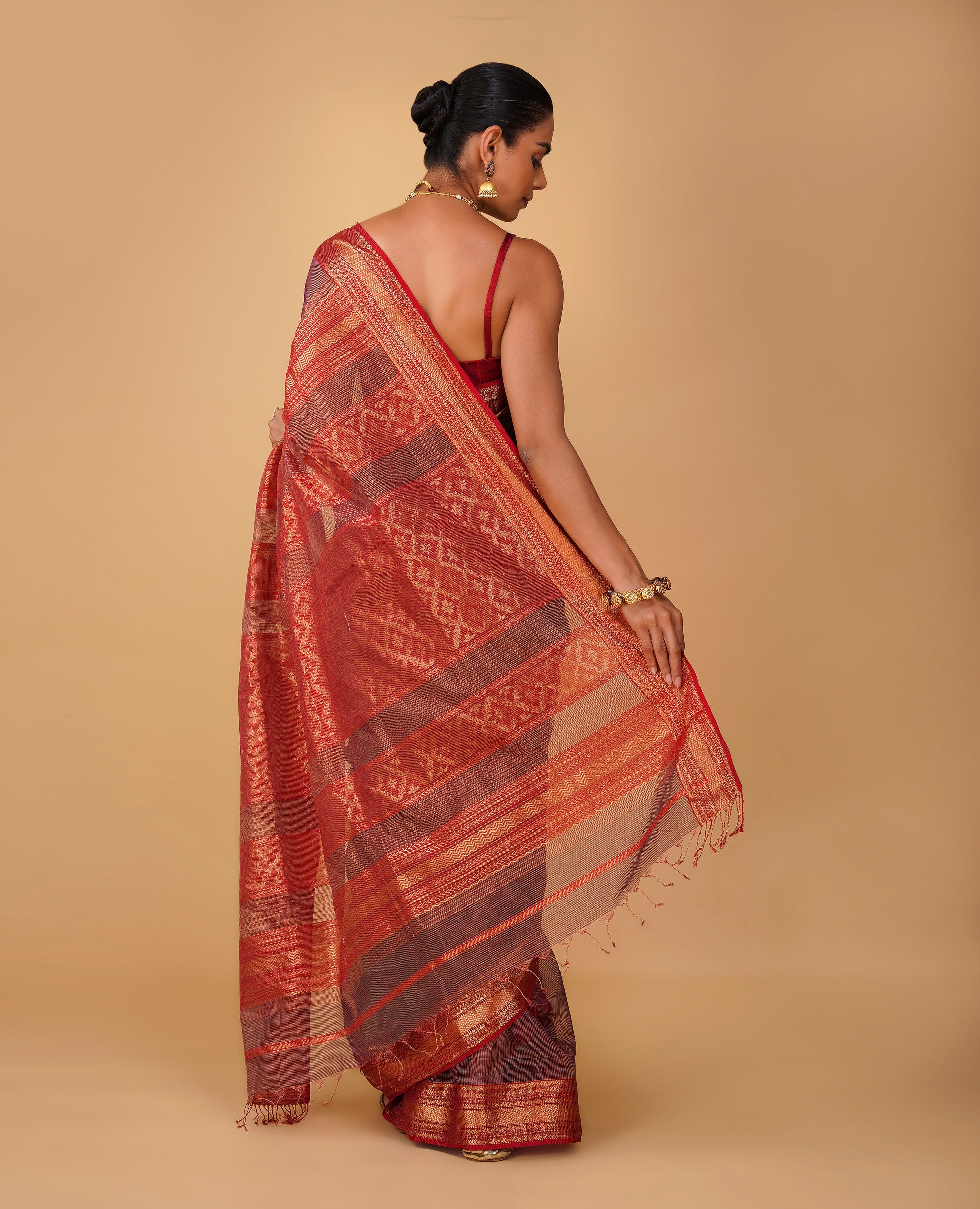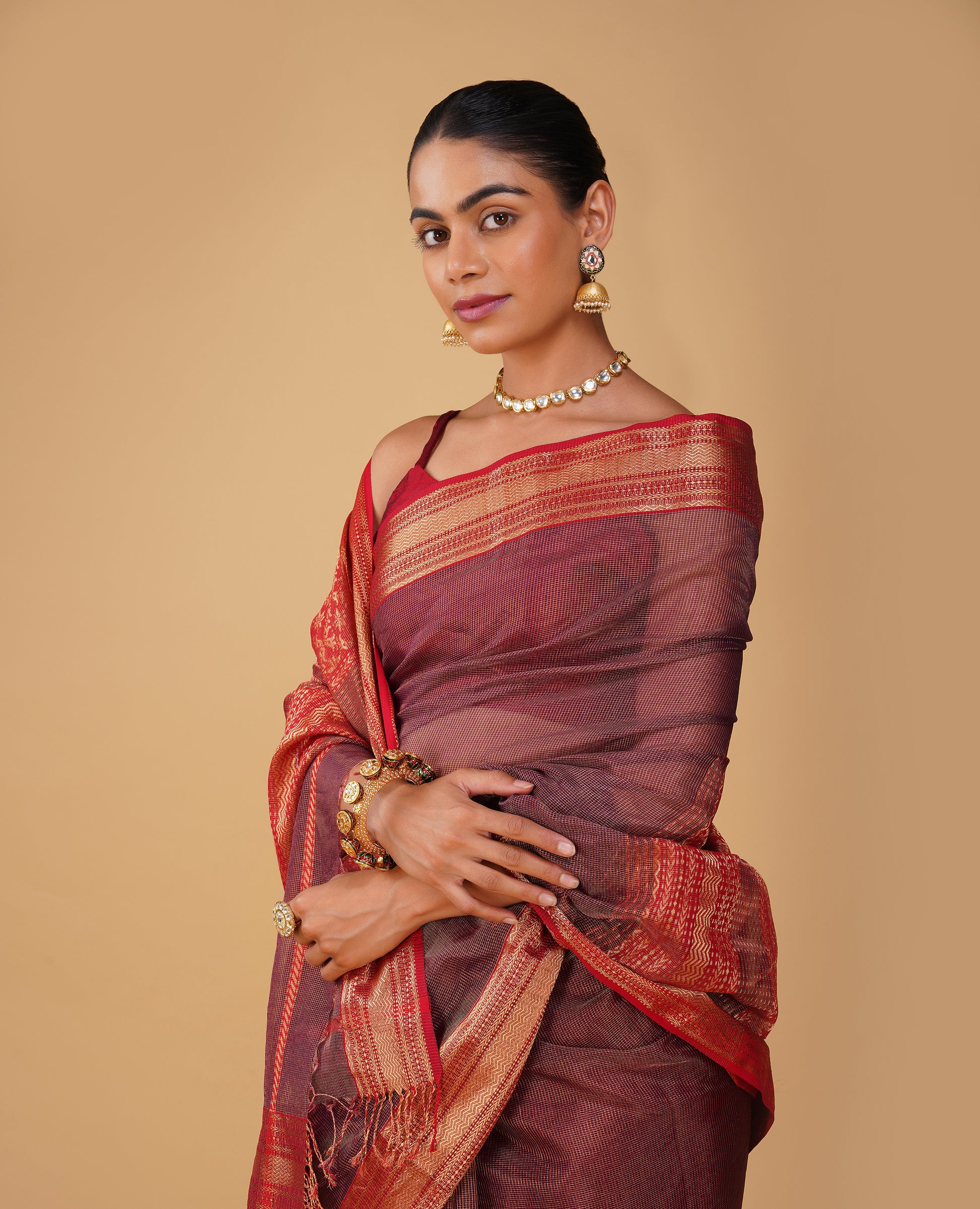 Fabric: Maheshwari (Silk-Cotton blend with tissue checks)