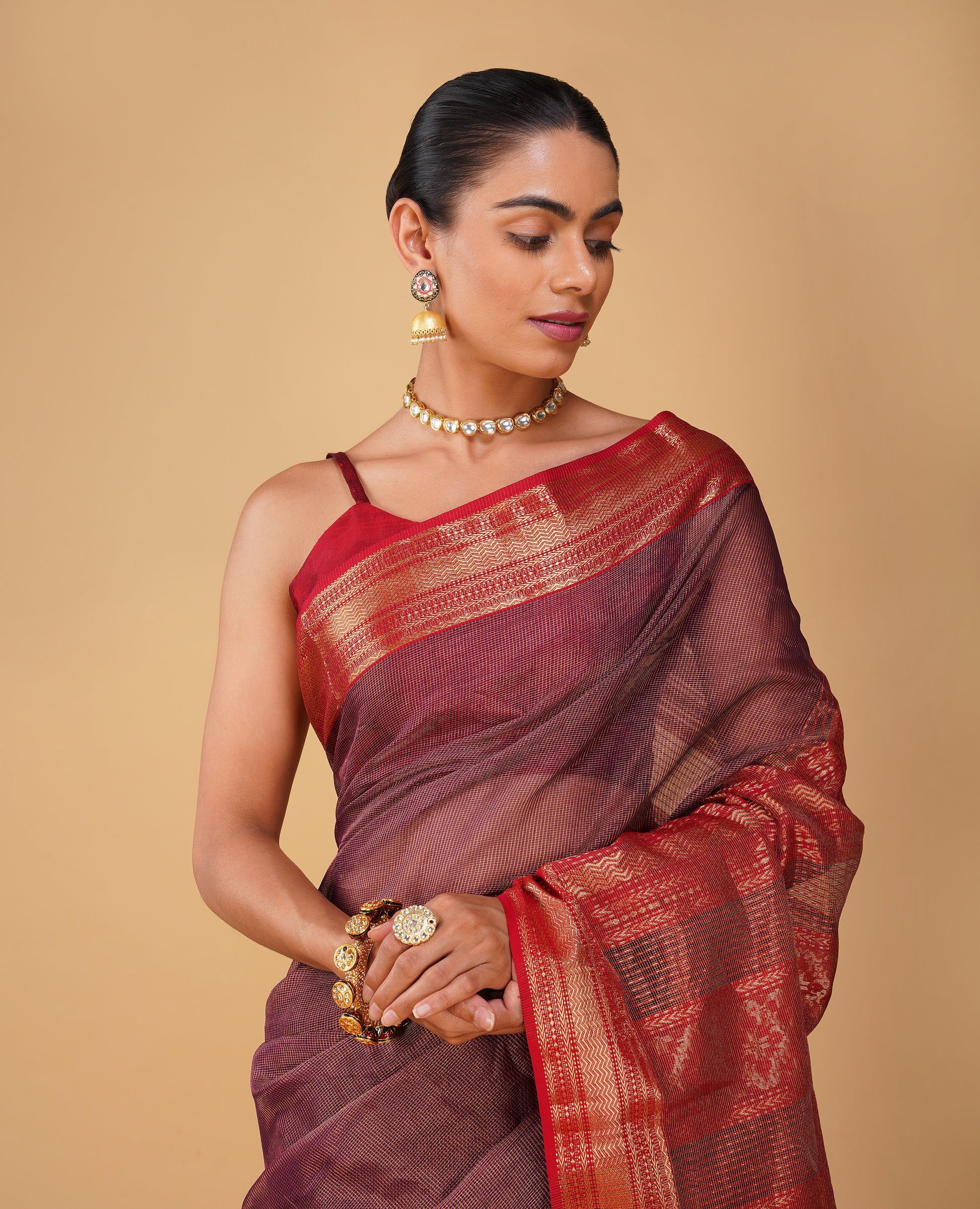 - Avoid spraying perfume directly on the saree