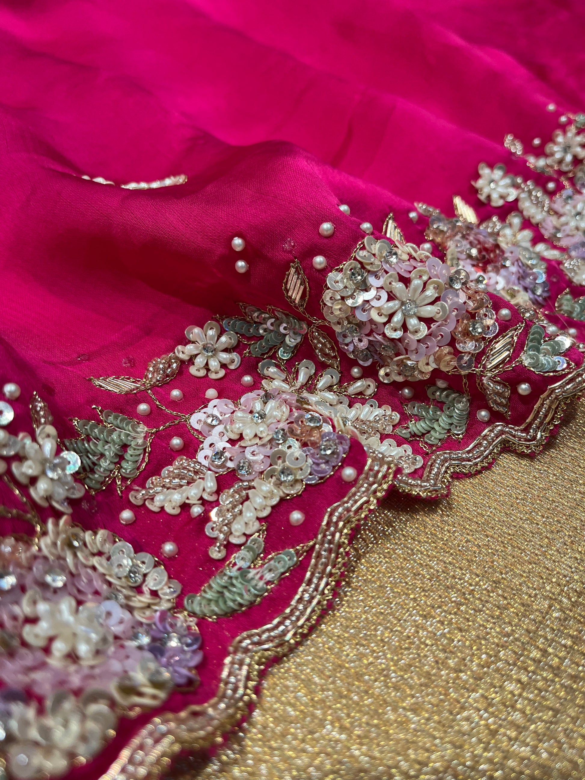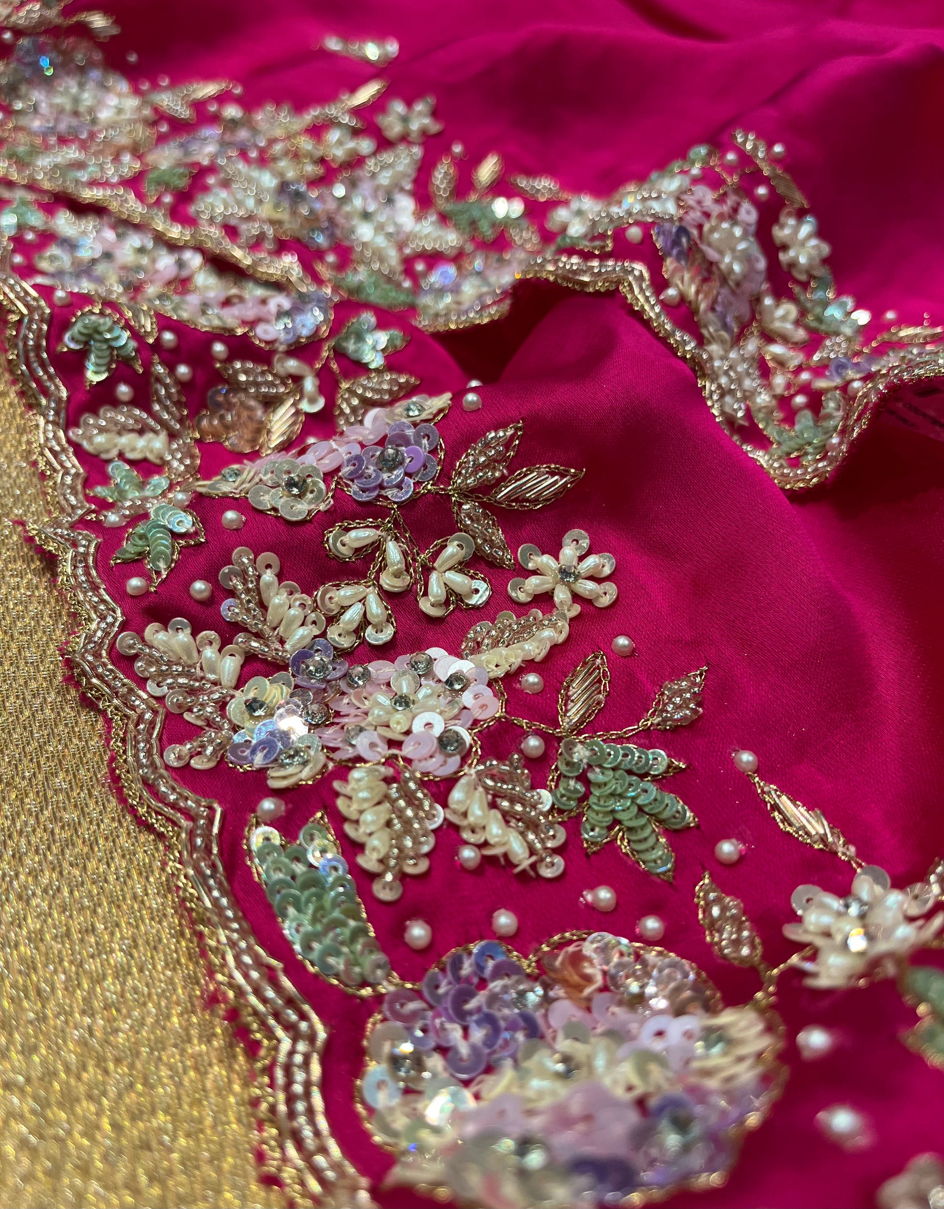 RANI COLOUR SATIN SILK EMBROIDERED SAREE EMBELLISHED WITH CUTDANA, SEQUINS & BEAD WORK
