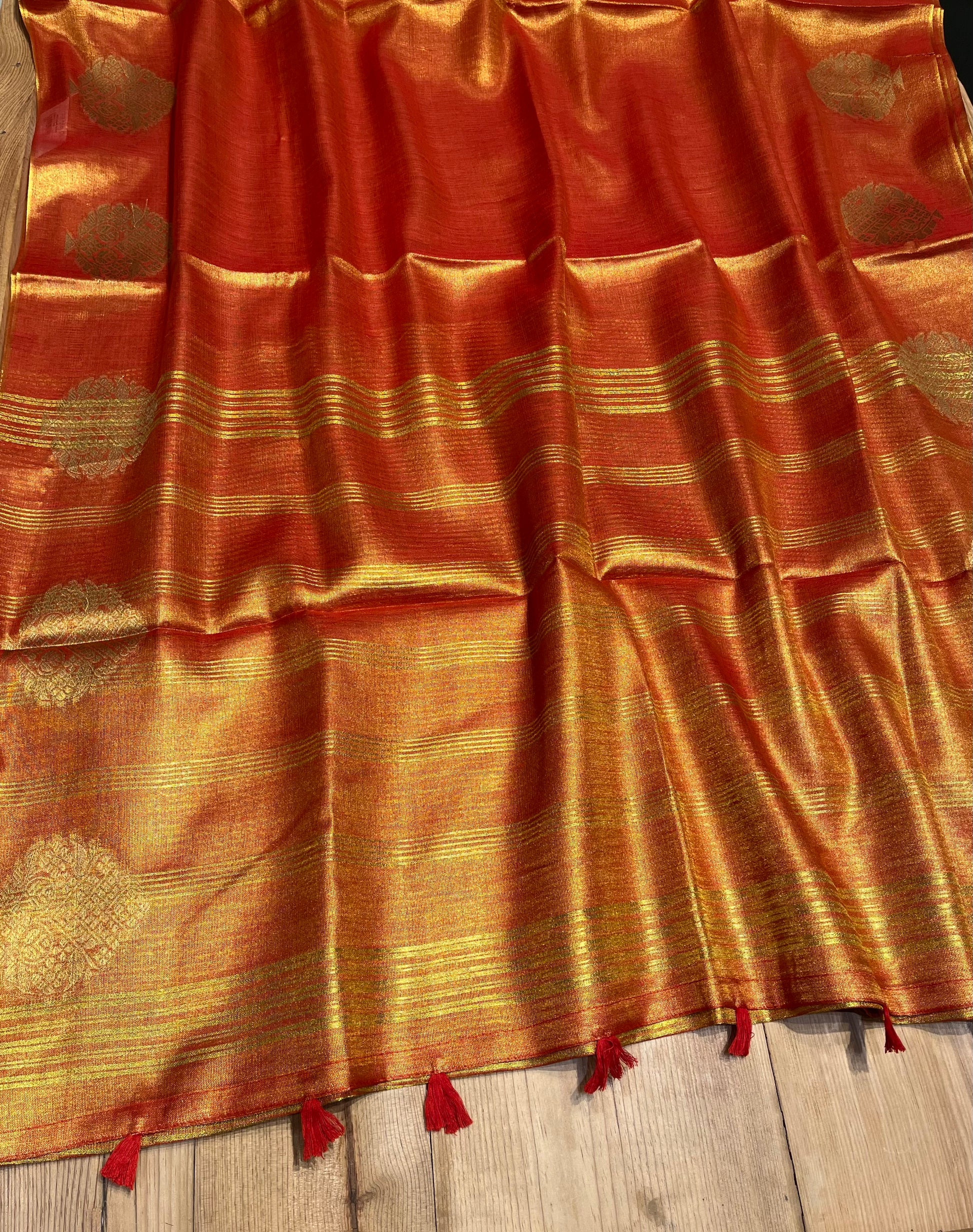 RUST ORANGE COLOUR TISSUE SAREE