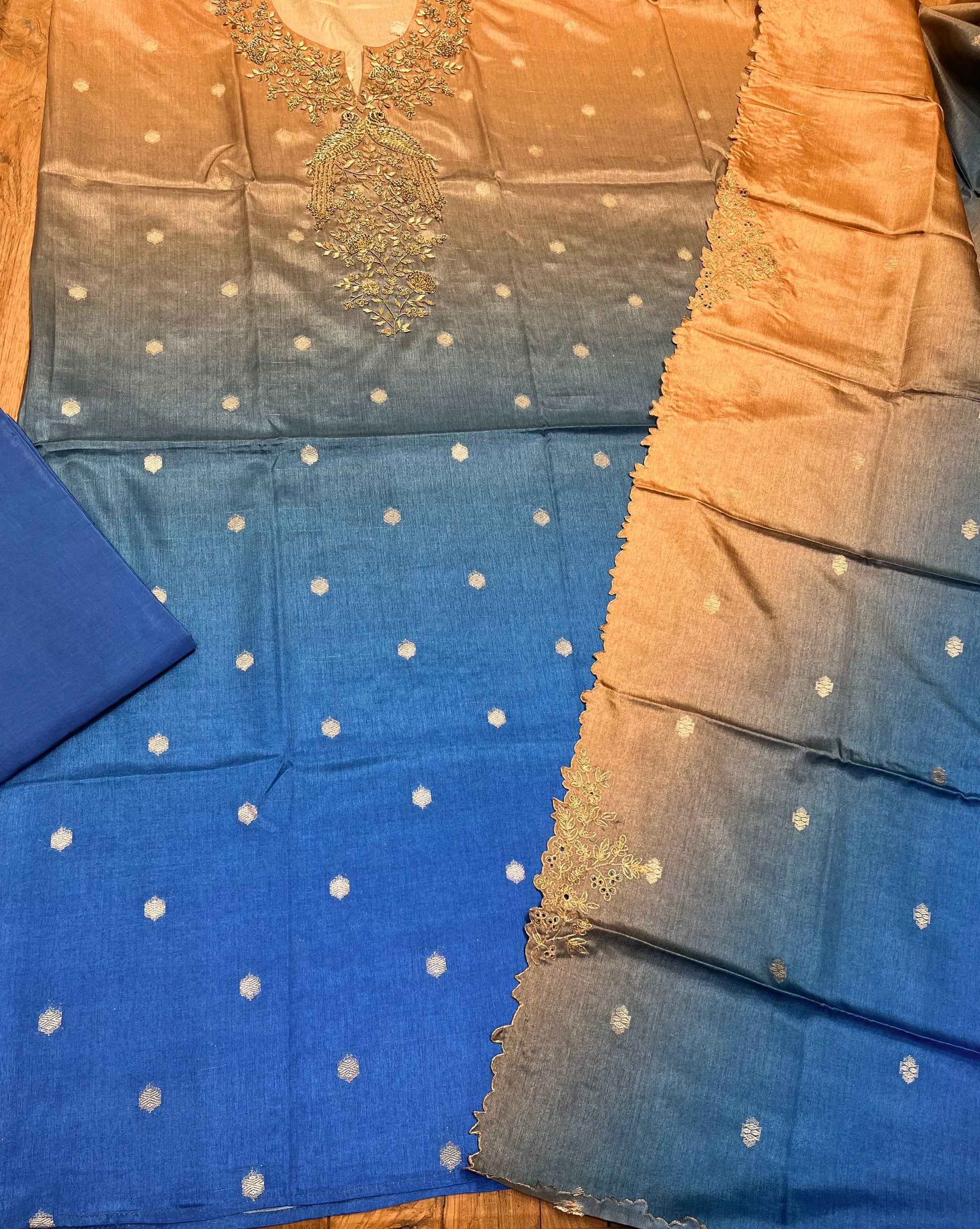 SILK SHADED UNSTITCHED SUIT SET EMBELLISHED WITH ZARDOZI WORK (DELIVERY IN 20 DAYS)