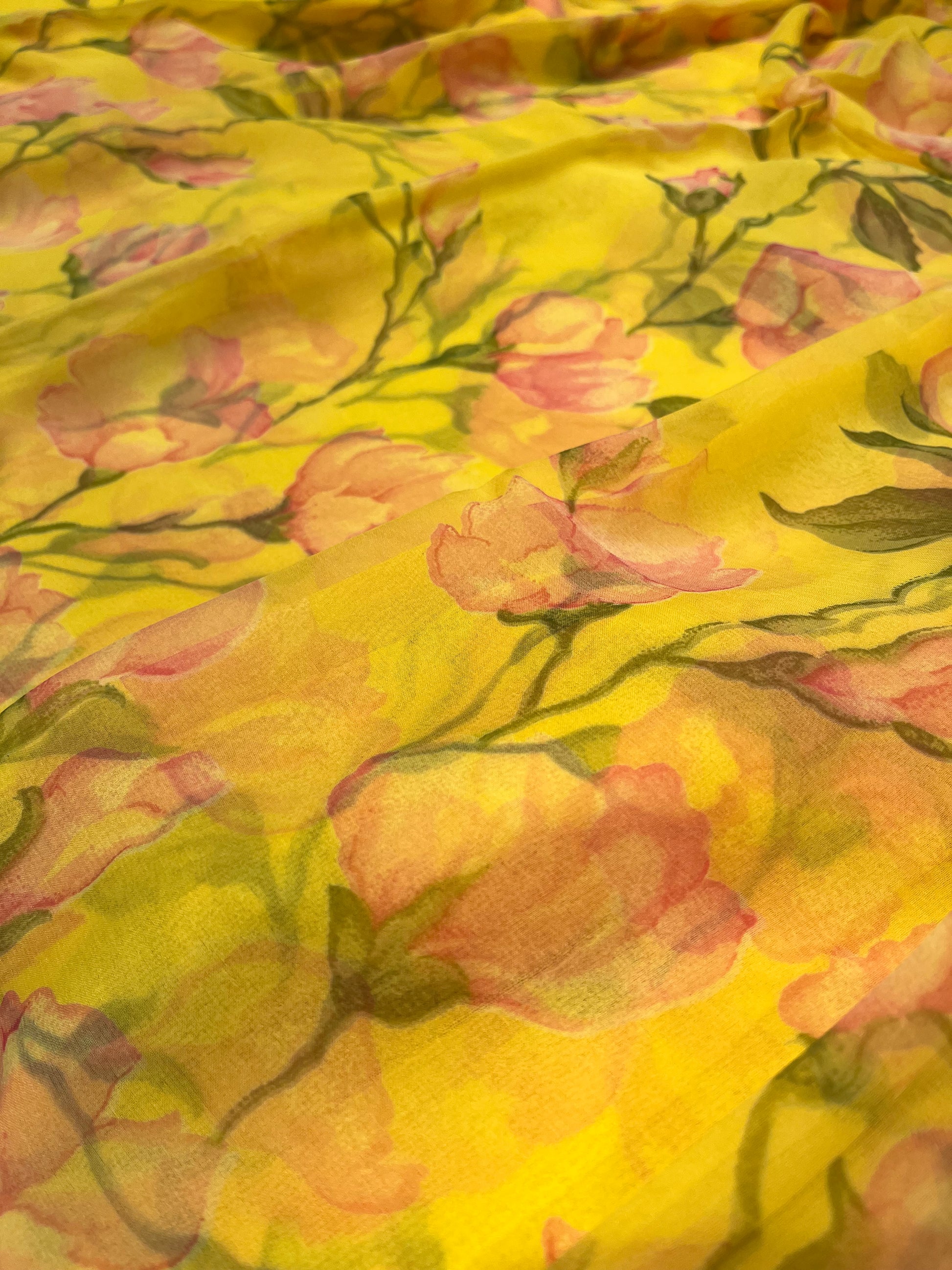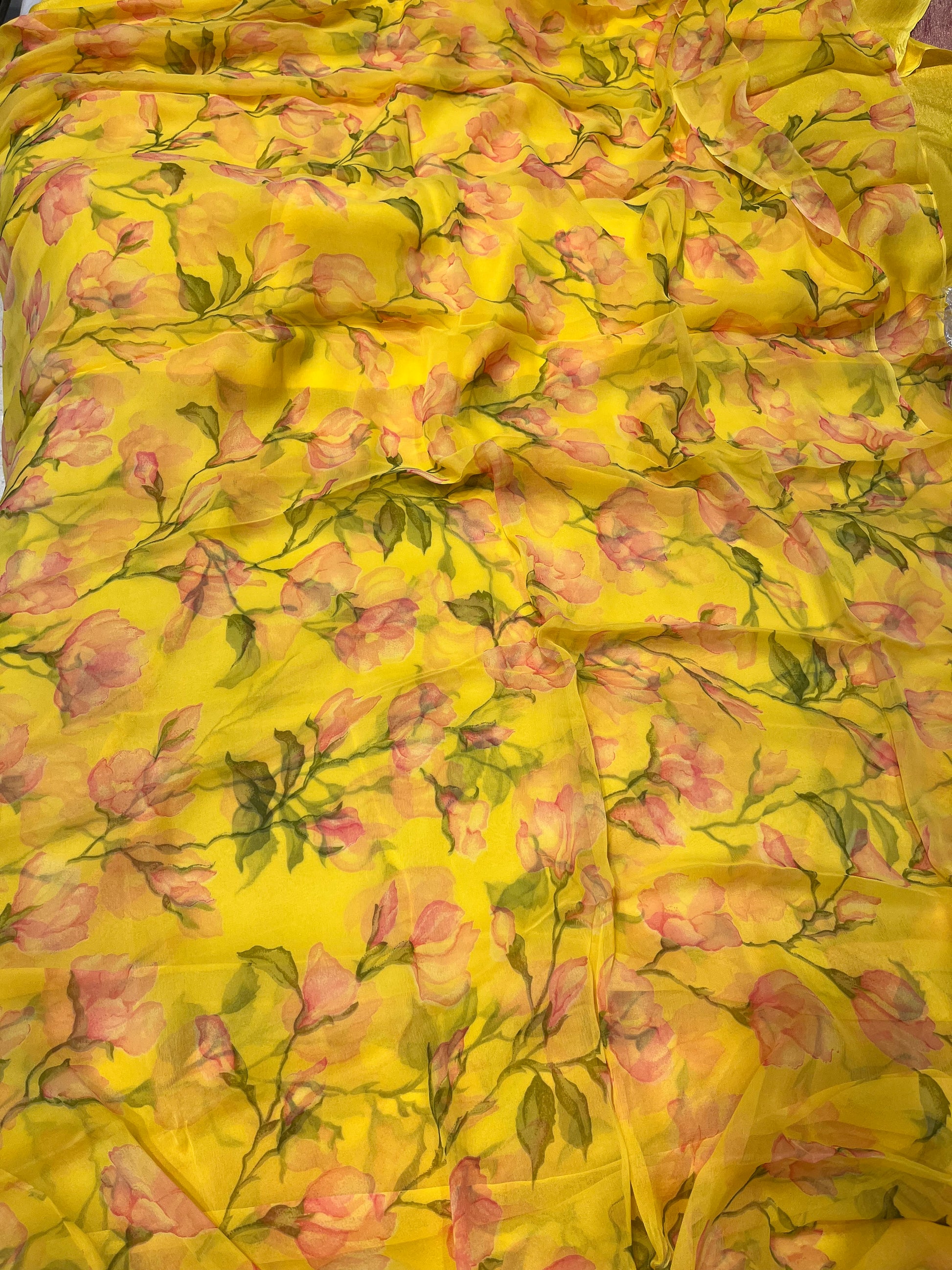 YELLOW COLOUR PRINTED CHIFFON SAREE (30gm)