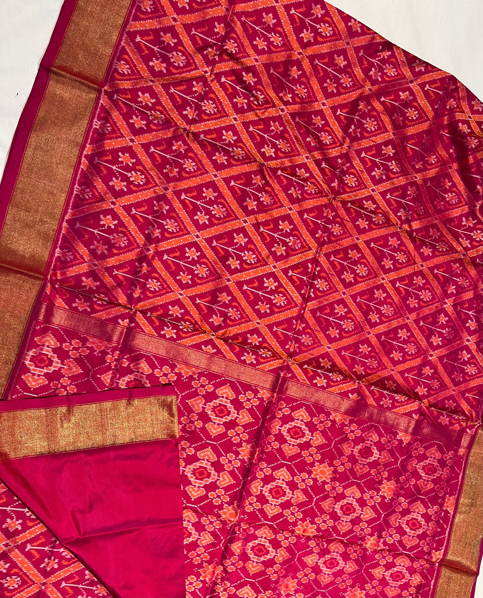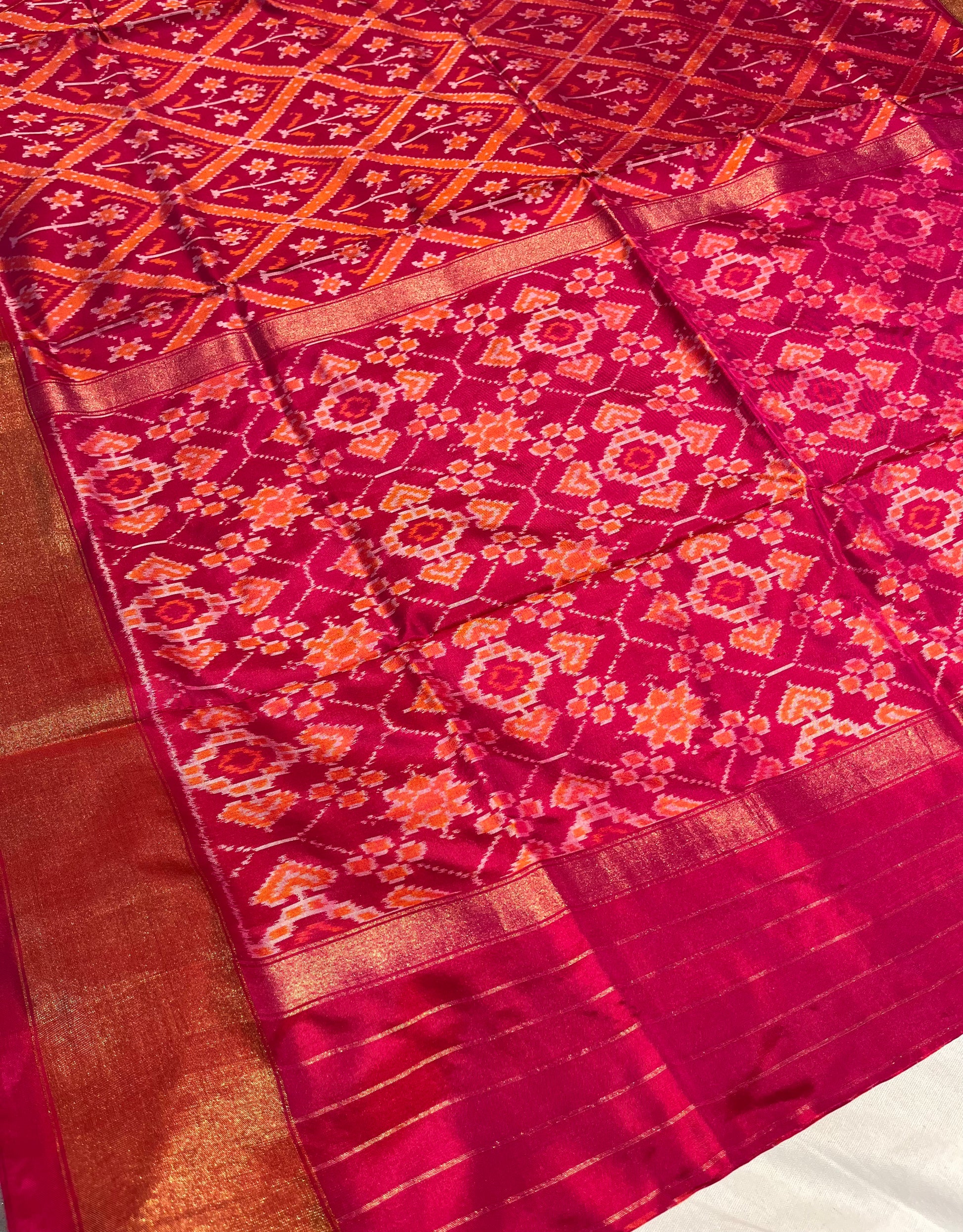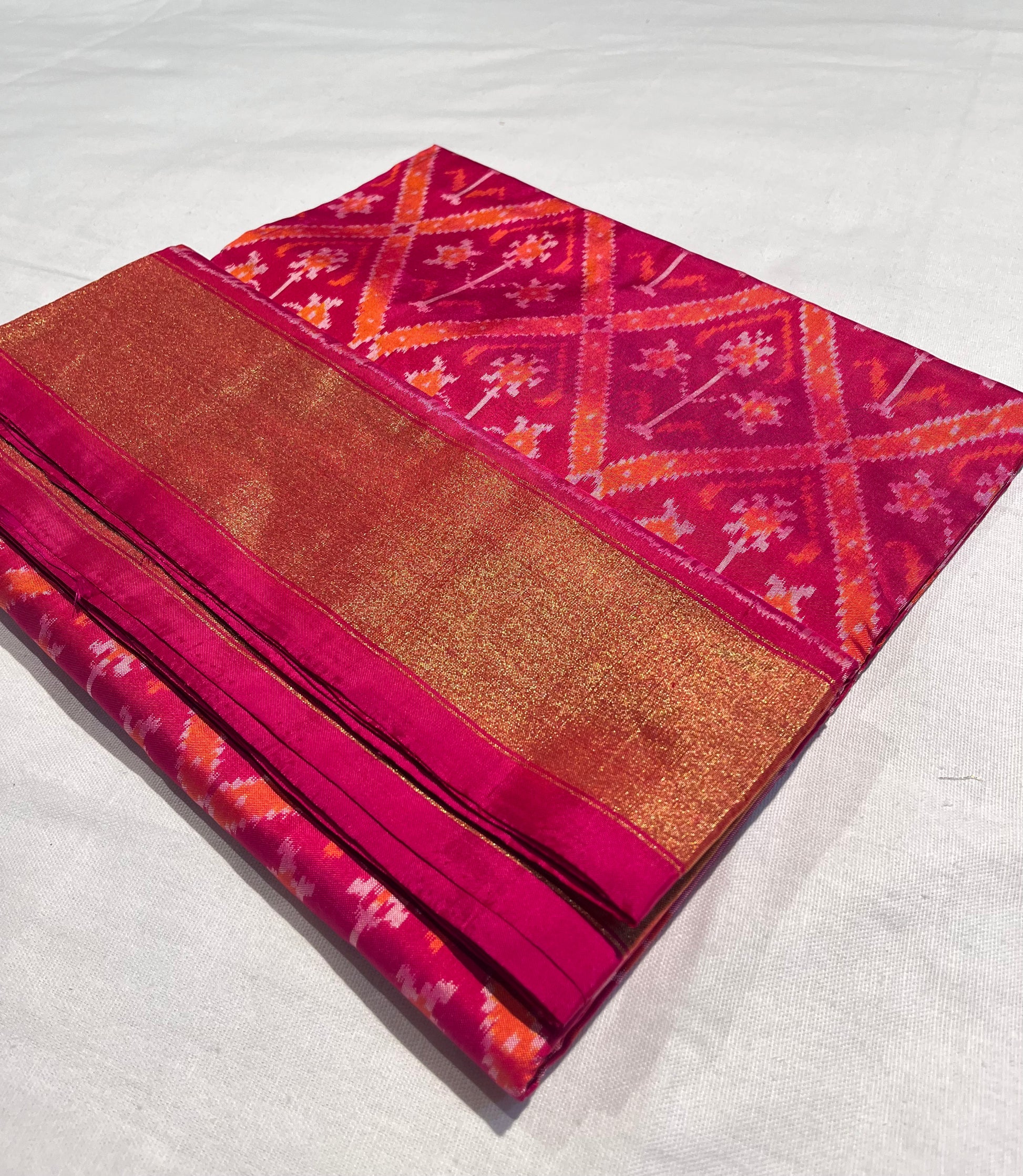 STAND OUT IN RANI PINK PURE SILK IKKAT SAREE, TIMELESS ELEGANCE