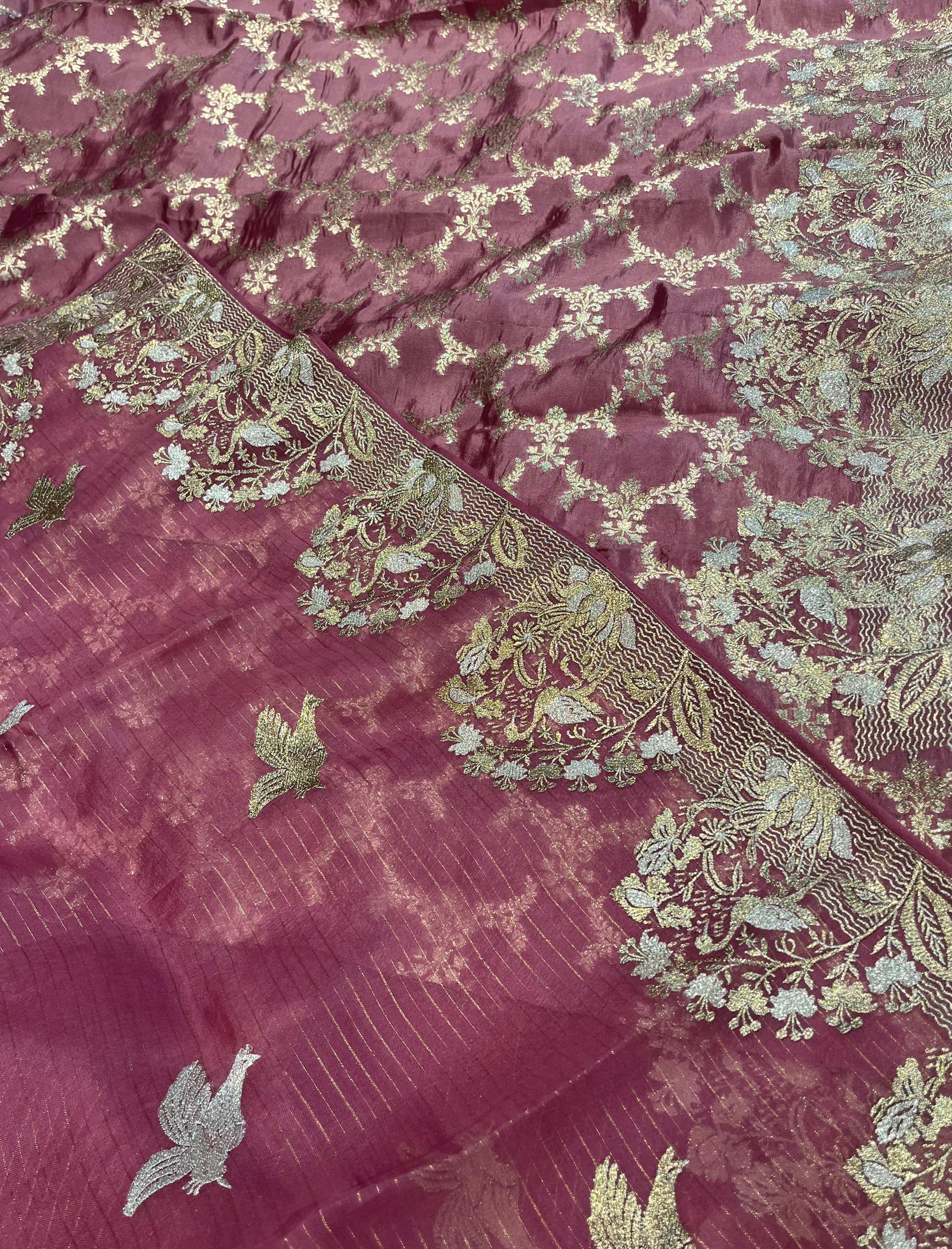 ONION COLOUR ORGANZA SILK ZARI EMBELLISHED SAREE WITH TUSSAR BROCADE SILK BLOUSE
