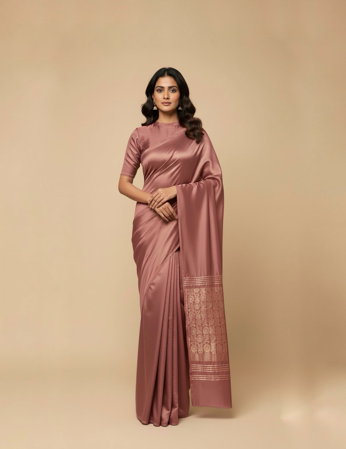 TURKISH ROSE COLOUR MODAL SILK SATIN SAREE WITH BANARASI PALLA