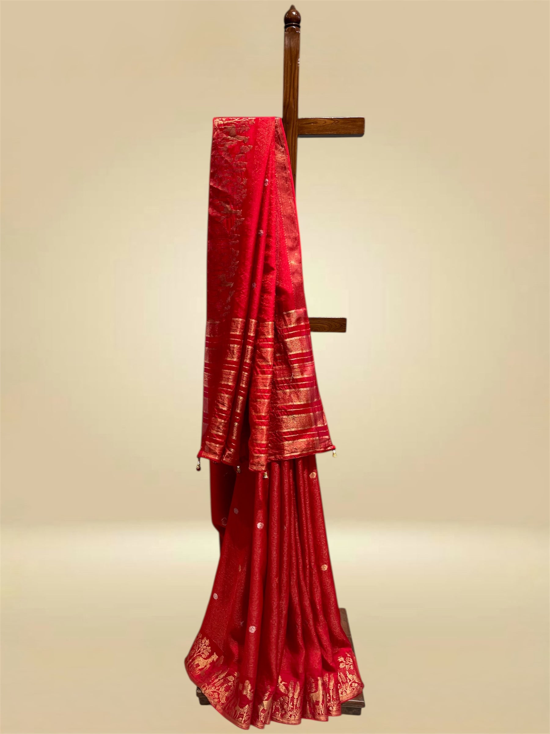 BRIGHT RED DOLA SILK ZARI STRIPE SAREE