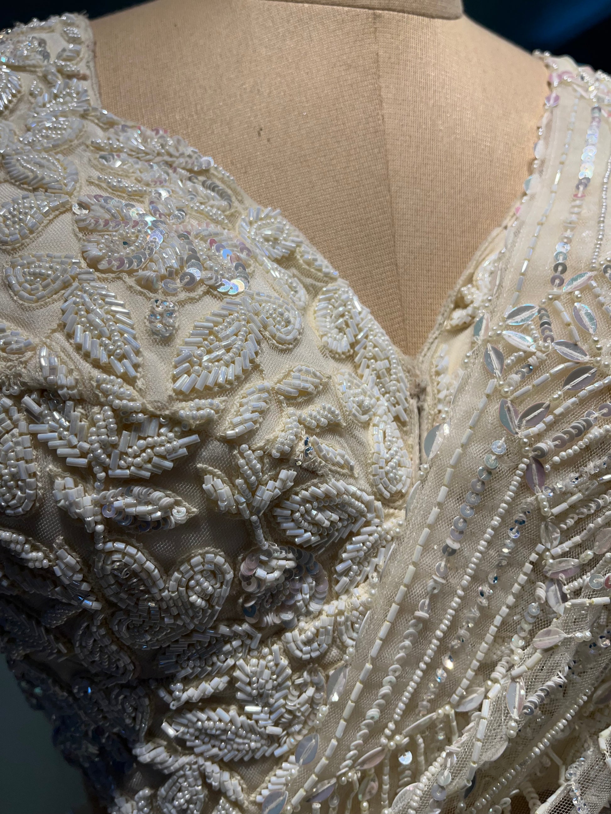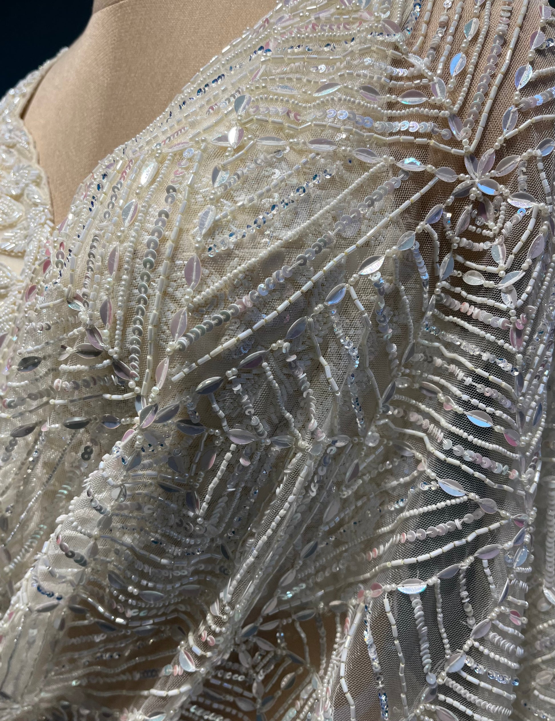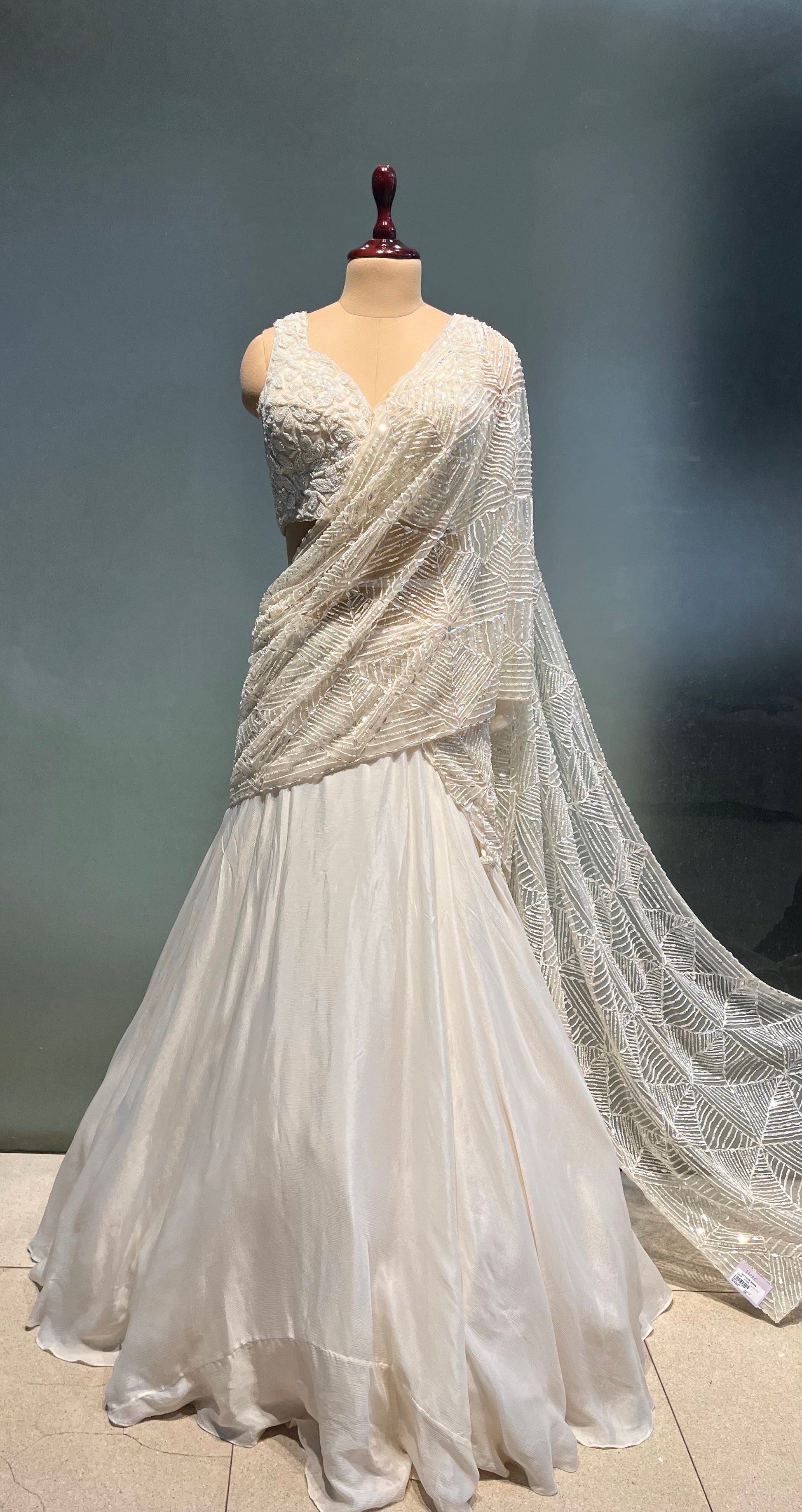 IVORY COLOUR PURE CHINON SKIRT WITH HAND EMBROIDERED BLOUSE EMBELLISHED WITH CUTDANA & SEQUINS WORK
